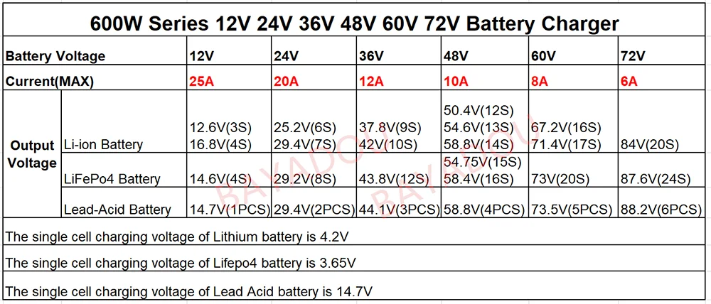 Применить к: аккумуляторной батарее 29,2 V 8S LiFePO4.