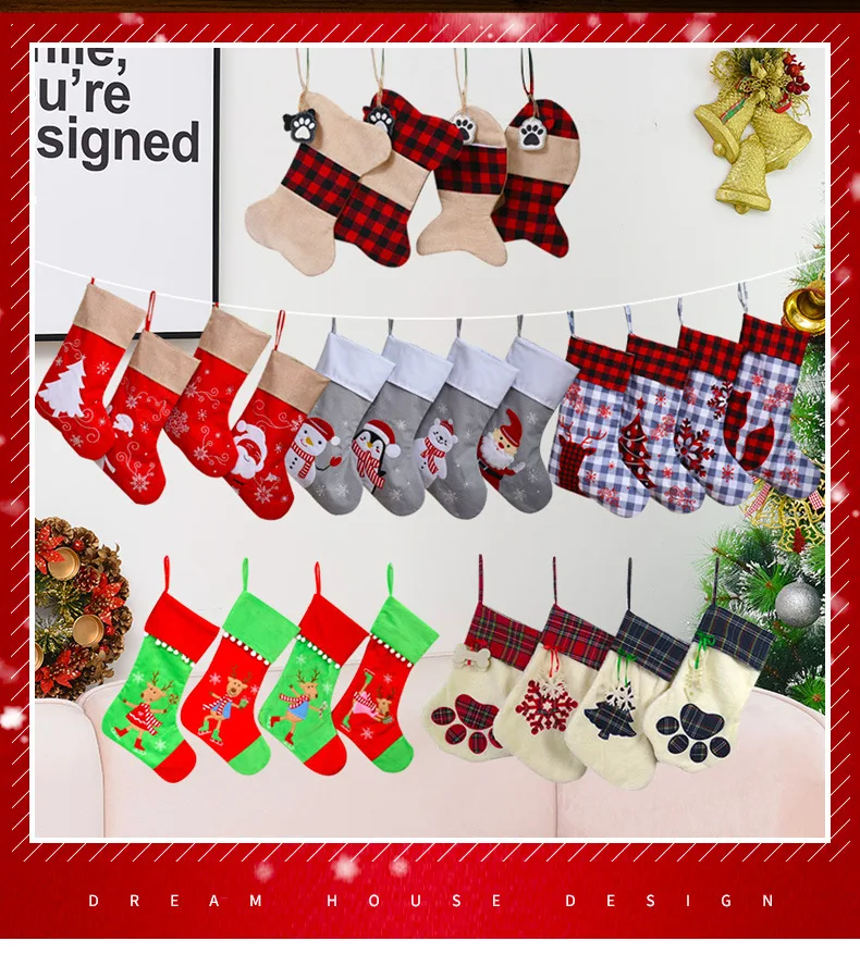 Снеговик Олень Пингвин Санта Клаус Рождественская елка чулок Подарочная сумка Рождественский Декор