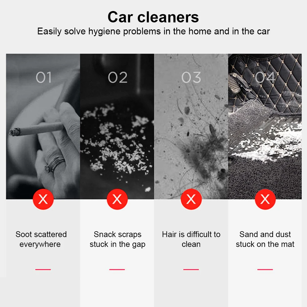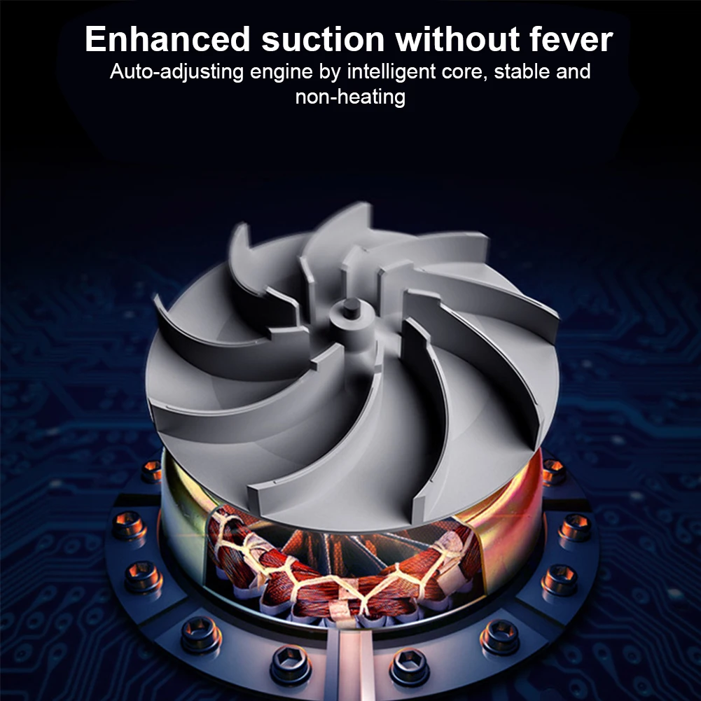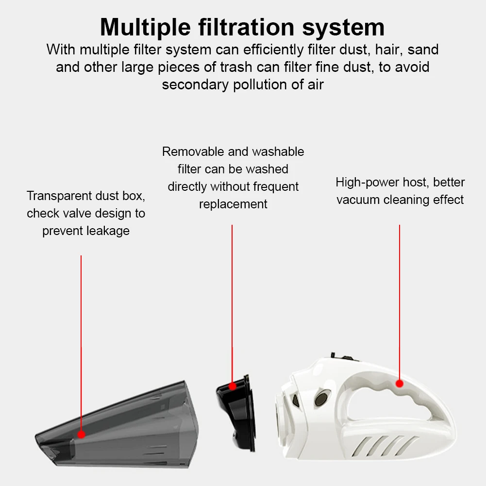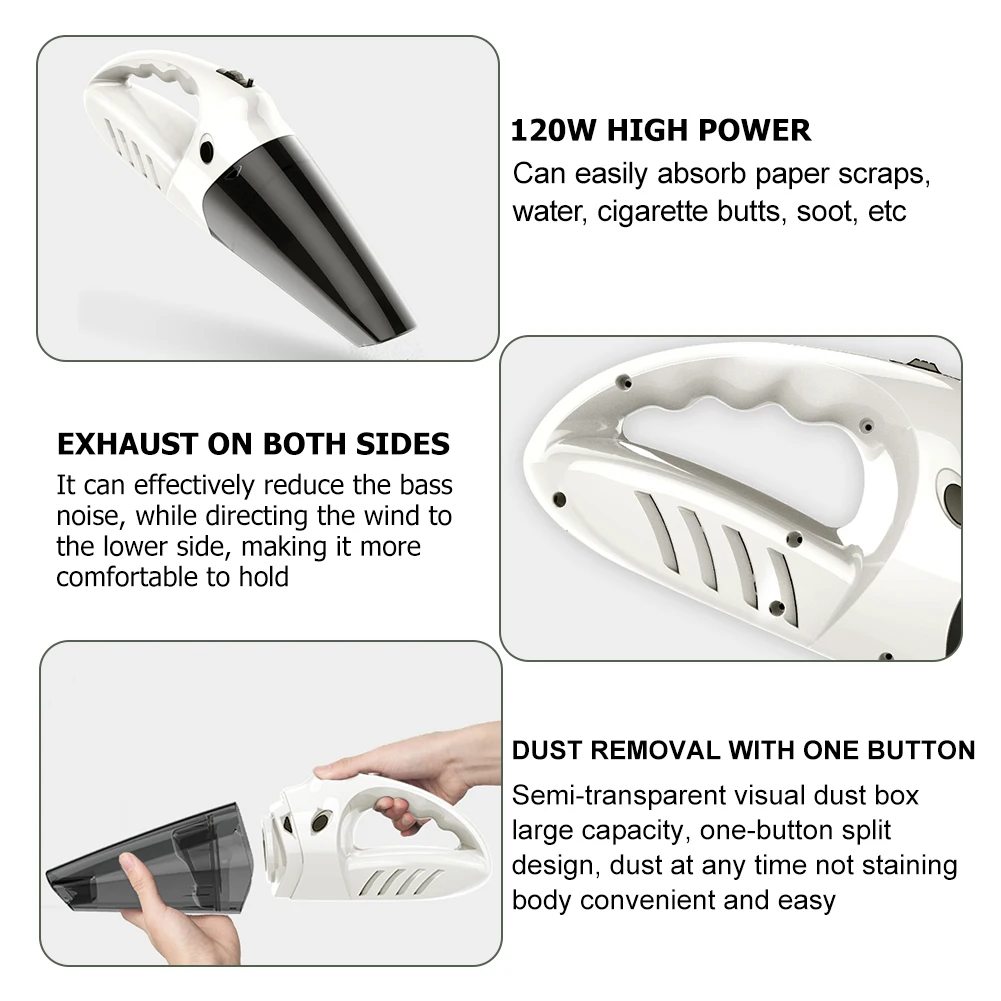 Ручной вакуум использует 120 Вт Супер мощный двигатель обеспечивает сильное всасывание 4500 па. Портативные вакуумные беспроводные устройства могут тщательно очистить ваши лестницы, кухню, автомобиль или труднодоступные углы без громоздких и запутанных шнуров.