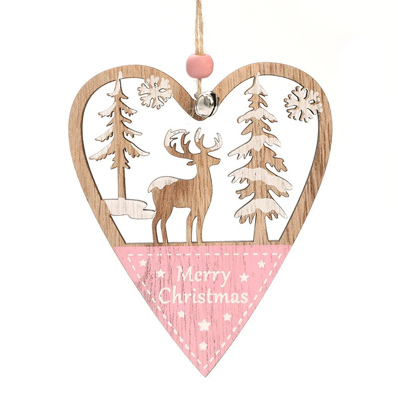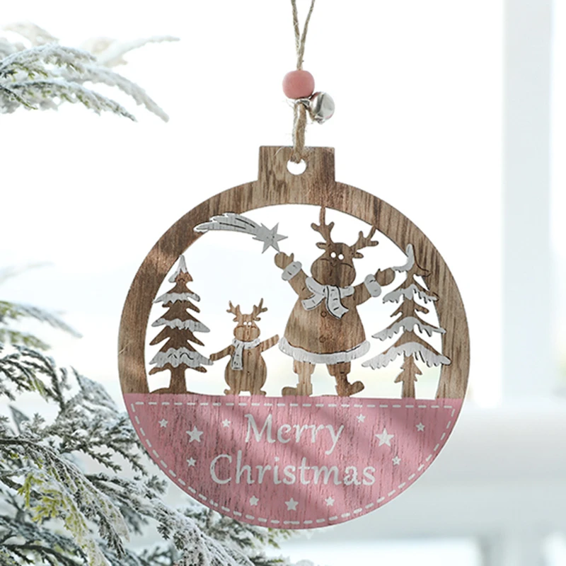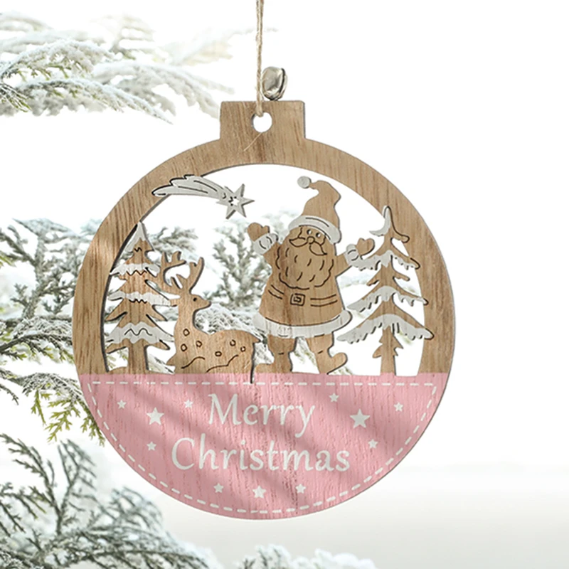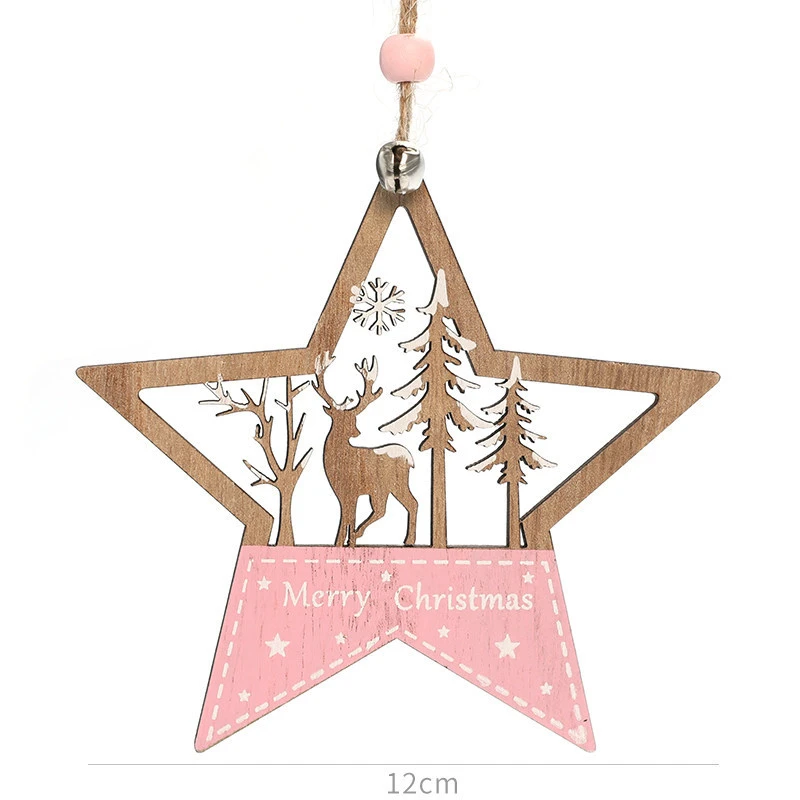 2021 New Year 1Pc Pink Christmas Ornament Wooden Hanging Pendants Star Xmas Tree Love Santa Claus Christmas Decorations