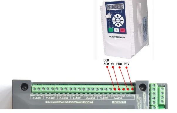 4) 1 порт, скорость вращения шпинделя 0-10 В, аналоговый выходной интерфейс (можно изменить на выход ШИМ);