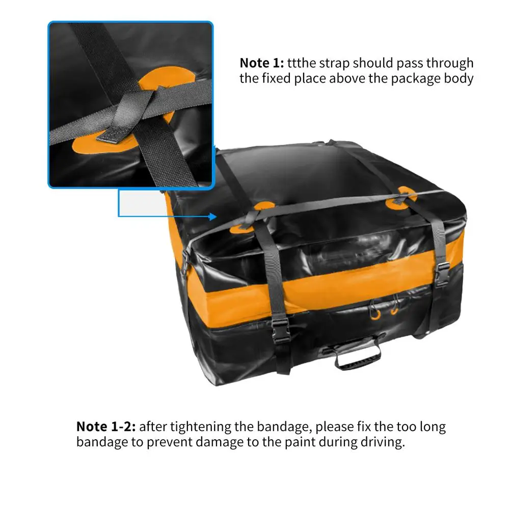 5、Easy to Install: The roof storage bag fits any car, truck or SUV. Whether or not your vehicle has a rack installed, you can install it quickly and easily within a few minutes.