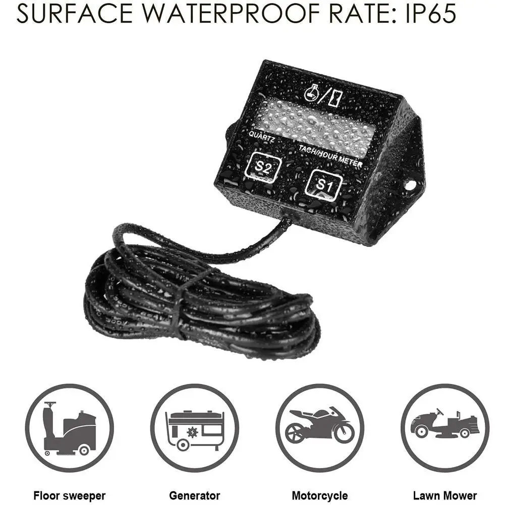 С функцией сброса до нуля часов Счетчик часов считывает до 10000 часов, а затем перезагружает до нуля и тахометр может считывать до 99999 об/мин
