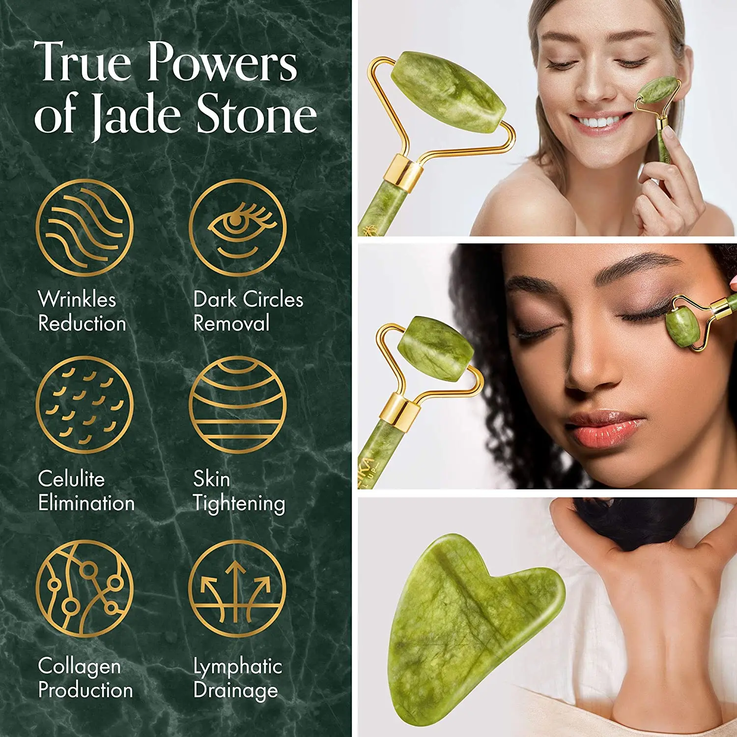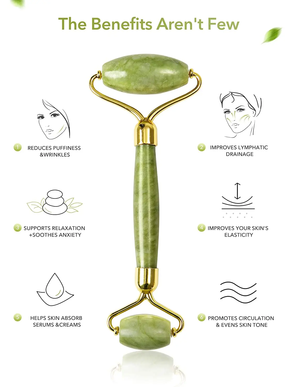 Преимущества: нефритовый валик и гуаша --- облегчение мышечного напряжения и лимфодренаж; Уменьшает отечность лица и помогает коже выглядеть свежей; Укрепляет кожу и делает ее стройной и поднятой