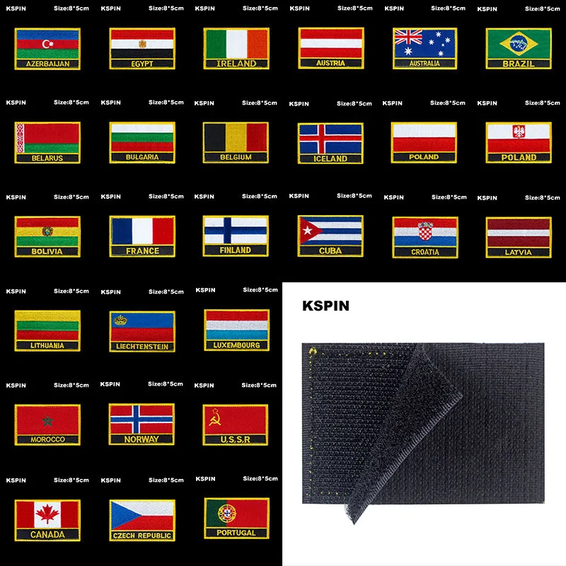 National Flag Patch Hook Loop Azerbaijan Canada Czech Rep. Switzerland Badges Armband 3D Stick on Jacket Backpack Stickers