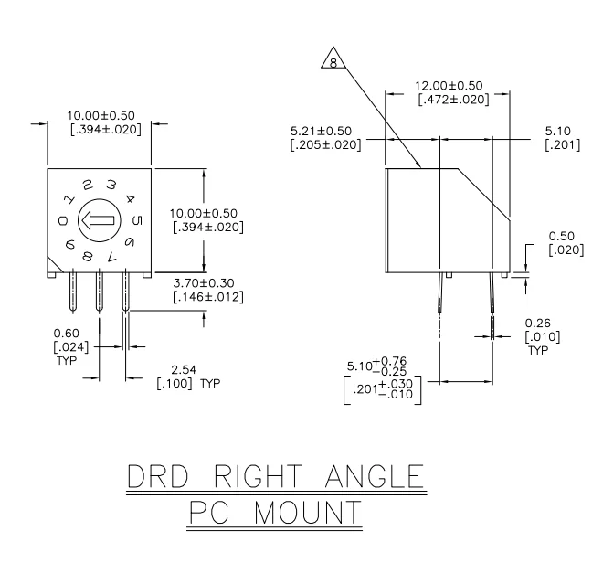 Импортные ALCO DRD16CRAE04 1825008-3 0-F/16 бит поворотный переключатель кодирования, Боковая регулировка и дополнят код 3: 3 штифт, обратный код, длительный срок службы, устойчивость к воздействию высоких температур, обе модели являются одним и тем же продуктом с подробной информацией и чертежами размеров
