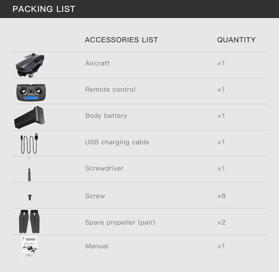 1 x Квадрокоптер SG908 RC