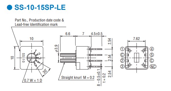 Япония COPAL SS-10-15SP-LE, для детей от 1 года до 5 лет шестерни поворотный переключатель кодирования 4:4 штифт с ручка положительный размеры прямые 8 pin Позолоченный футов, оригинальный, настоящий с детальными данными будут чертеж, с указанием размеров