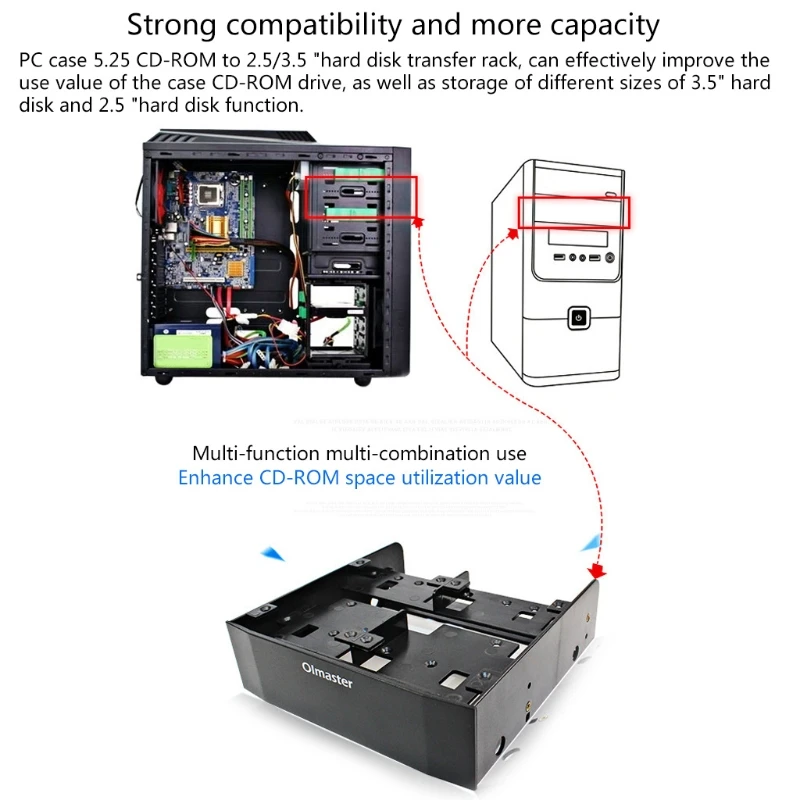 Стандартный 5,25 дюймов устройство, подходит для 2,5 дюймов/3,5 дюймов жёсткий диск, с различные режим установки.