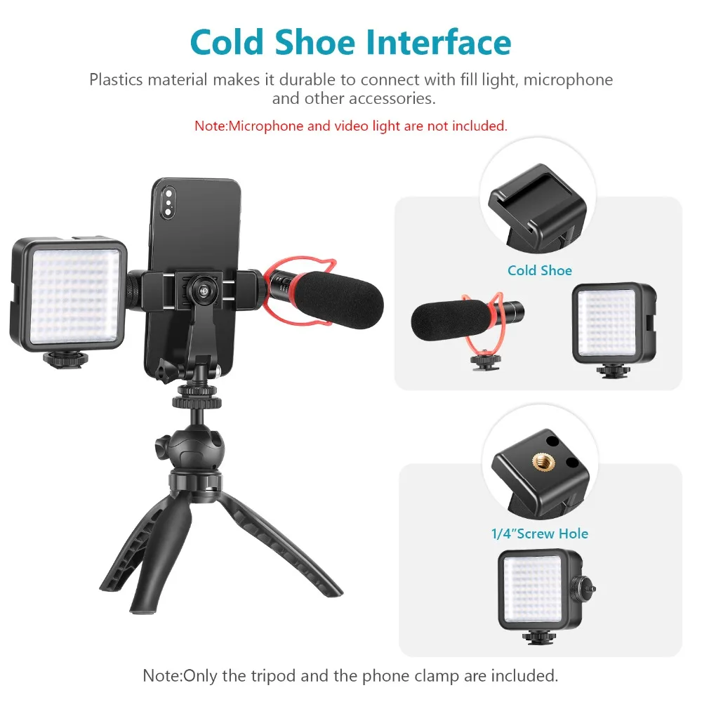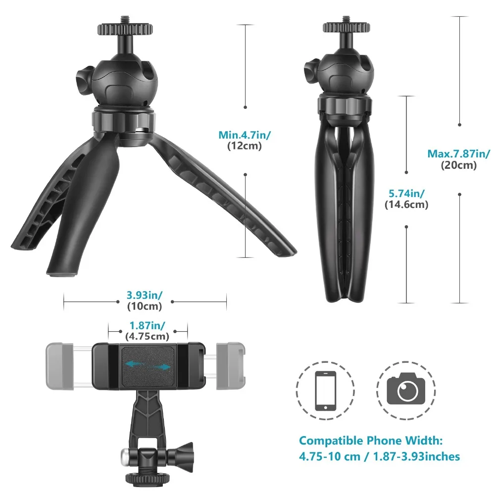 Neewer Настольный Штатив для телефона с держателем смартфона, работает со светодиодной подсветкой и микрофоном, совместим с iPhone 7 8 X XS MAX 11 Pro Samsung для Vlog YouTube Filmmaker (LED и Mic не входят в комплект)