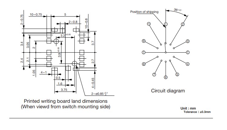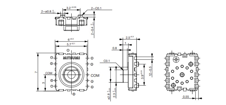 SRM-1011ST SMD 10-pin thin rotary encoder switch 10 positioning 7*6*2.5mm small volume SMD original authentic taping packaging high temperature resistance with detailed data size drawing