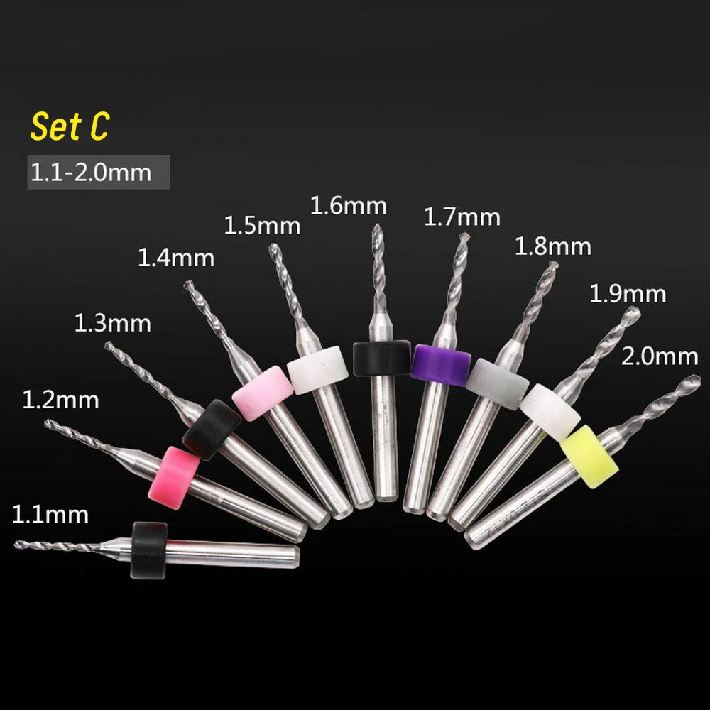 Набор мини-сверл для гравировки печатной платы с ЧПУ, 10 шт., 0,3-1,2 мм, 0,6-1,5 мм, 1,5-2,4 мм, 2,1-3,0 мм, 1,1-2,0 мм