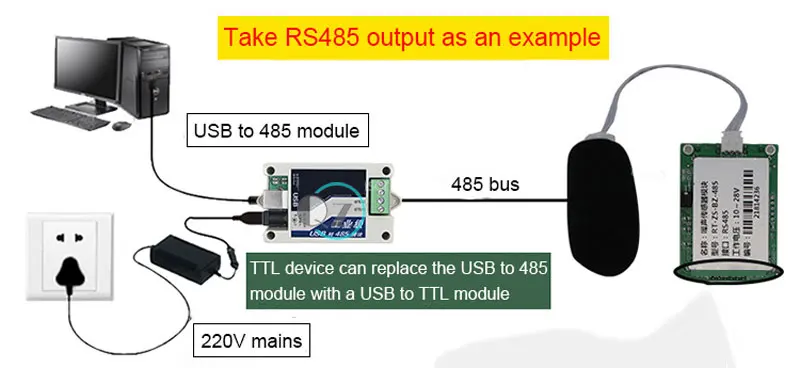 | 3 | TXD/A | Серийная передача данных (выходное напряжение 0 ~ 3,3 В) 485-а линия | |