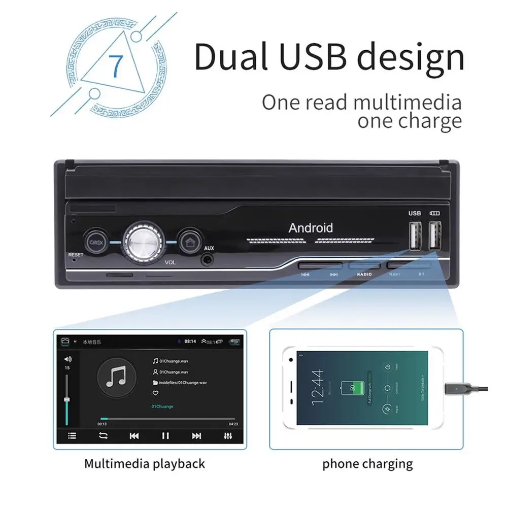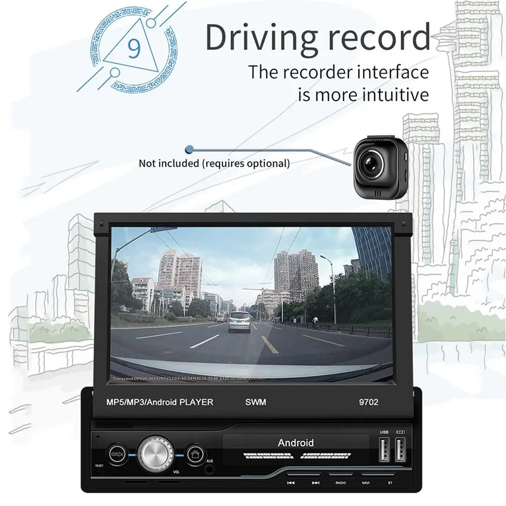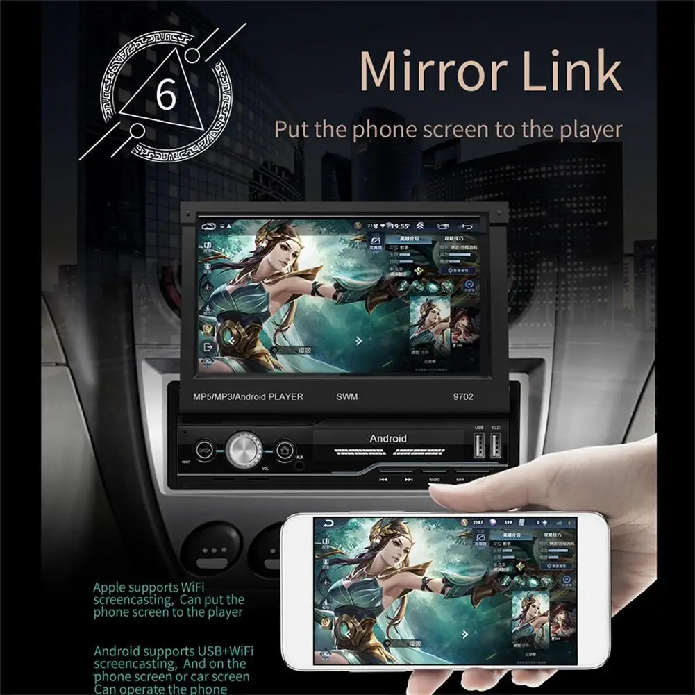 1. 7 дюймов 1 DIN 1080P HD 1024*600 разрешение автомобиля радио MP5 плеер складной емкостный сенсорный экран.