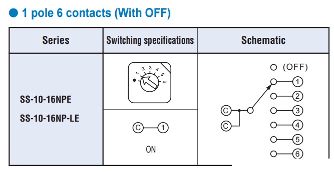 Без замыкания (без замыкания (1 полюс 6 контактов с выкл., 2 полюса 3 контакта, 1 полюс 6 контактов с выкл., 2 полюса 3 контакта) SS-10 Оригинальные копические коробки по 50 шт. с подробной информацией и чертежом размера