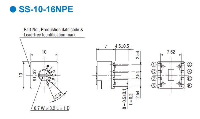 Импортный японский COPAL Copal SS-10-16NPE 1-6 Положение/6 передач поворотный переключатель кодирования 4:4 положение контакта прямой штекер 8-контактный позолоченный ножка 0 мм ручка