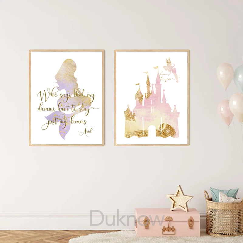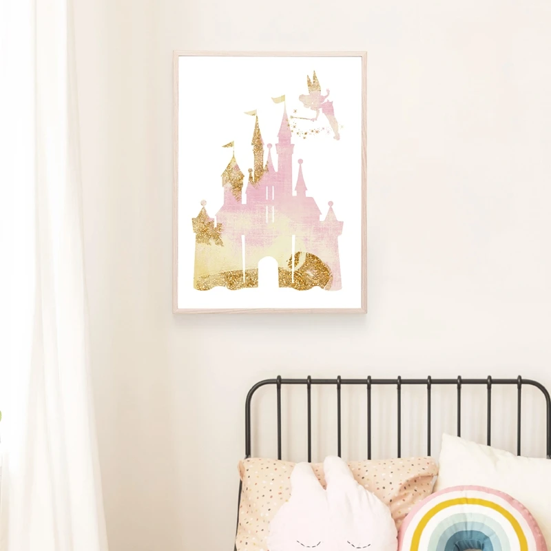 Классическая американская анимированная живопись на холсте, мультфильмы, настенные картинки для девочек, подарок, акварельная принцесса, замок, художественные принты, декор для детской комнаты