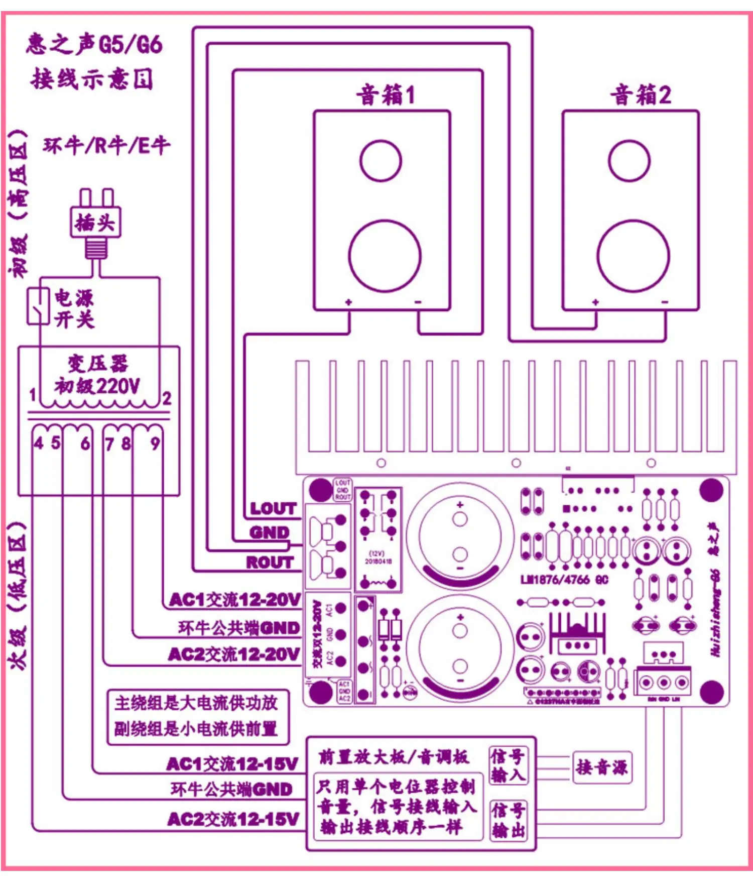 G6 LM1876/4766 введение в комплект усилителя мощности