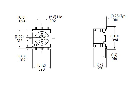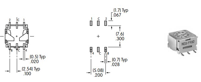 Imported from Japan NKK ND3-FR10P-TP 0-9/10-bit rotary coding switch patch 6-pin 3:3 pin gold-plated foot, one word knob, positive code sealed high-performance taping packaging ND3FR10P-R with details Data size chart