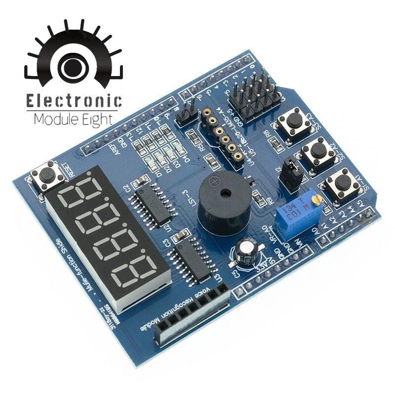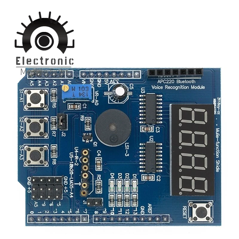 Это база с открытым исходным кодом и простая платформа ввода/вывода и с использованием аналогичной среды разработки языка java, C. Таким образом, вы можете быстро использовать язык со вспышкой или обработкой... И другое программное обеспечение для интерактивной работы. Может использоваться для завершения разработки электронных компонентов, таких как переключатель или датчики или другие контроллеры, светодиодный, шаговый двигатель или другое выходное устройство. Вы также можете работать независимо как программная платформа, с которой можно общаться, например, сказал: flash processing Max / MSP VVVV или другое интерактивное программное обеспечение... Разработка интерфейса IDE с открытым исходным кодом основана на принципе, который позволяет скачать бесплатно, чтобы разработать более удивительную интерактивную работу.Многофункциональный Щит имеет следующие характеристики:1, с рынком, 2009 UNO LENARDO 2560 контроллерСветодиодный индикатор 2,4 (светодиодный индикатор, чтобы знать важность, в реальных проектах, с этим индикатором может быть использован непосредственно светодиодный рабочий статус, указывает на процедуру для облегчения отладки.3, интерфейс датчика температуры DS18B20, который можно сделать для измерения температуры эксперимента, эта цена не включает DS18B20 Oh, нужен другой снимок.4, интерфейс датчика температуры LM35, который можно сделать для измерения температуры эксперимента, эта цена не включает LM35 Oh, нужен другой снимок.5,3296 потенциометр с точной регулировкой, аналоговый входной порт (используется для контроля яркости светодиодный, поворота руля, цифрового напряжения и т. д.)6 интегрированных инфракрасных приемников, которые могут поместиться в любые эксперименты с инфракрасным пультом дистанционного управления, цена также не включает интегрированный приемник и требует другого снимка.7, четыре цифровых трубки (с помощью драйвера 74HC595 provincial IO learning SPI), вы можете сделать эксперимент с цифровым дисплеем (может отображать температуру, напряжение, значение счетчика и т. д.).8, три отдельных кнопки, кнопка сброса, кнопка может сделать эксперименты (HMI ) .9, звуковой сигнал используется для экспериментов. (Можно позвонить в милицию, совершить надпись и т. Д.)10 , Bluetooth, беспроводные интерфейсы, голосовой модуль, модуль распознавания голоса используется для эксперимента беспроводной связи11, интерфейс сервопривода, легко управлять сервоприводом