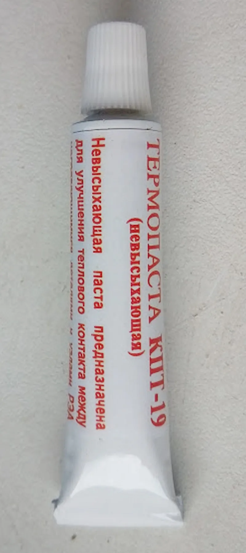 Термопаста КПТ-19 (Кремнийорганическая Паста Теплопроводная) - не высыхающая. Предназначена для улучшения теплопроводности между поверхностями процессоров, диодов, транзисторов и радиаторов. Имеет более высокотемпературный режим использования в сравнении с КПТ-8. Не засыхает и остаётся эластичной на протяжении всего времени.