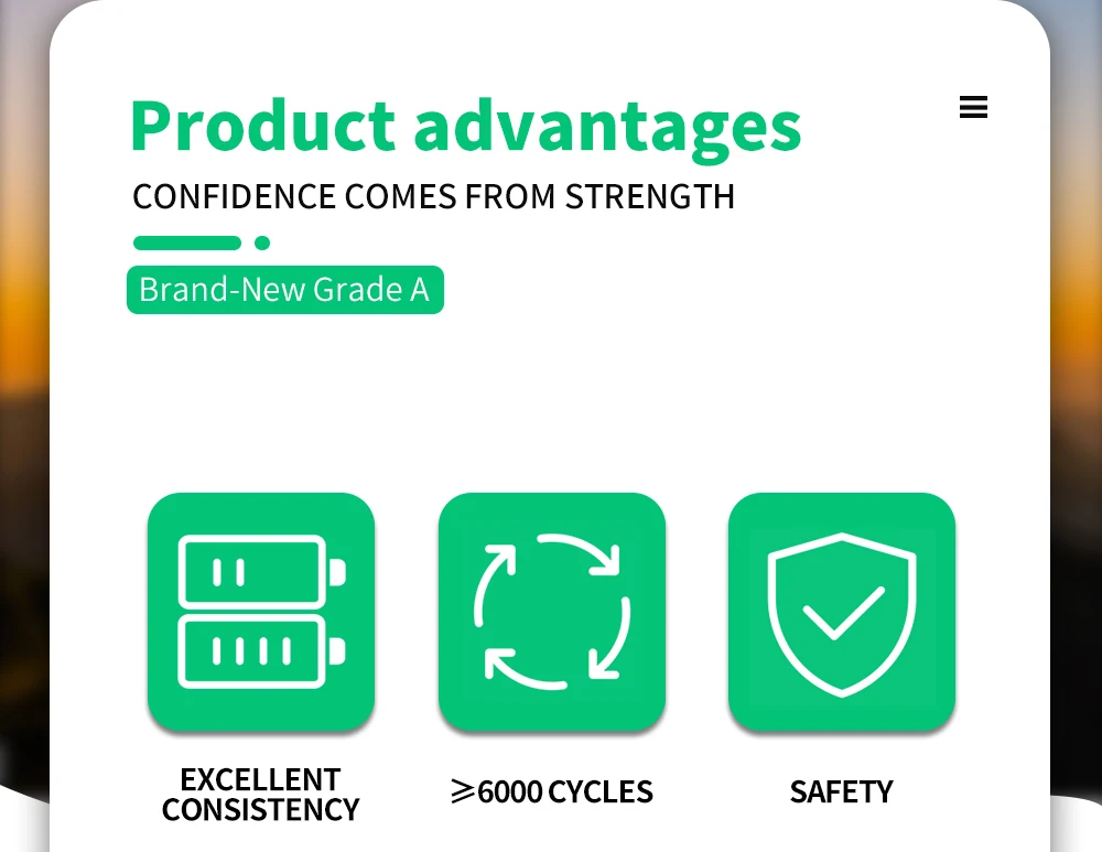 О: типичный расчетный срок службы литиевого фосфата железа (LiFePO4) батареи 5-15 лет, или 2000-8000 циклов зарядки. Один цикл зарядки-это период использования от полной зарядки, до полной разрядки и повторной полной зарядки.