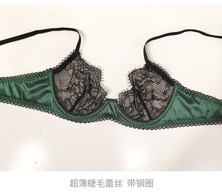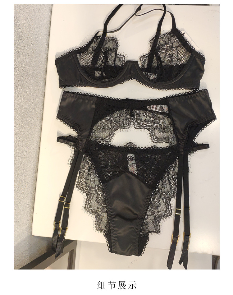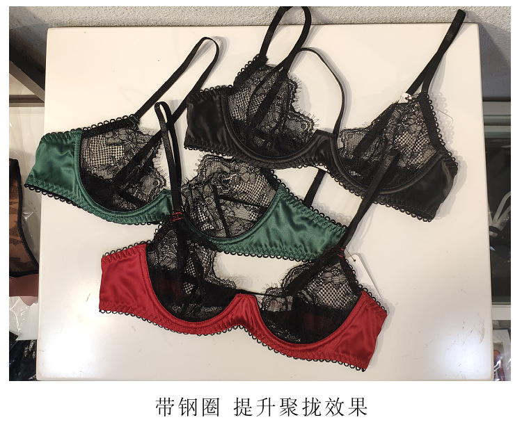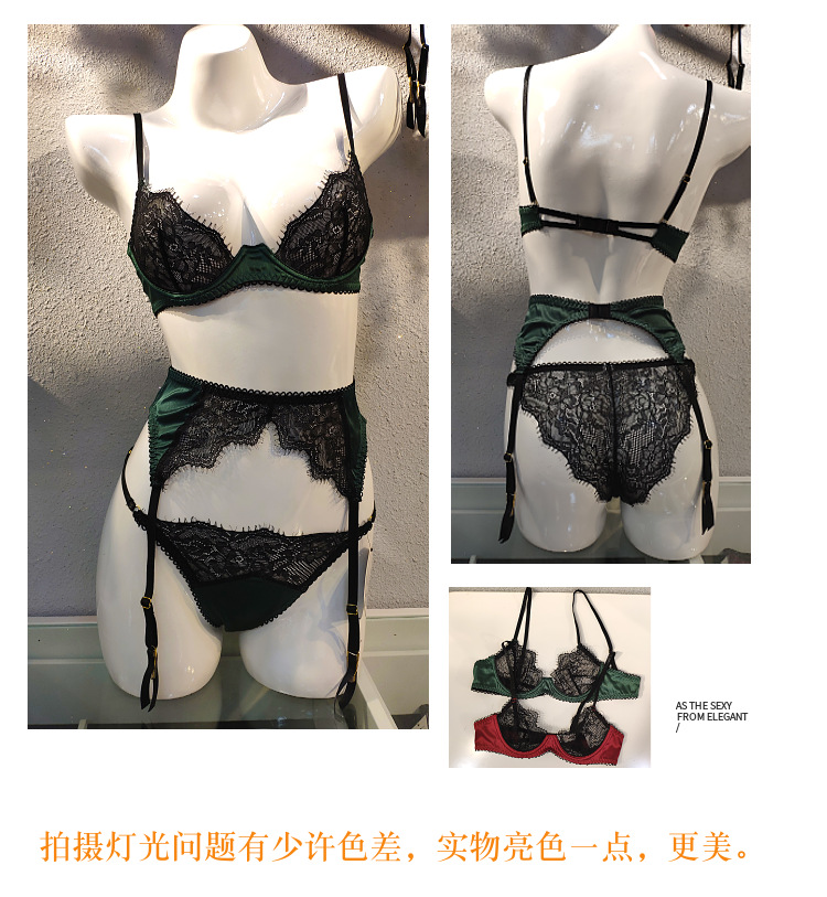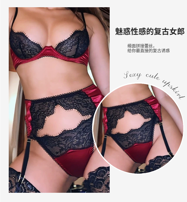 Сексуальное белье, Комплект трусов со стальным кольцом, половинные чашки, собранные трусики с подвязкой, комплект из трех предметов, большой размер, bralette, атласный ретро-бюстгальтер