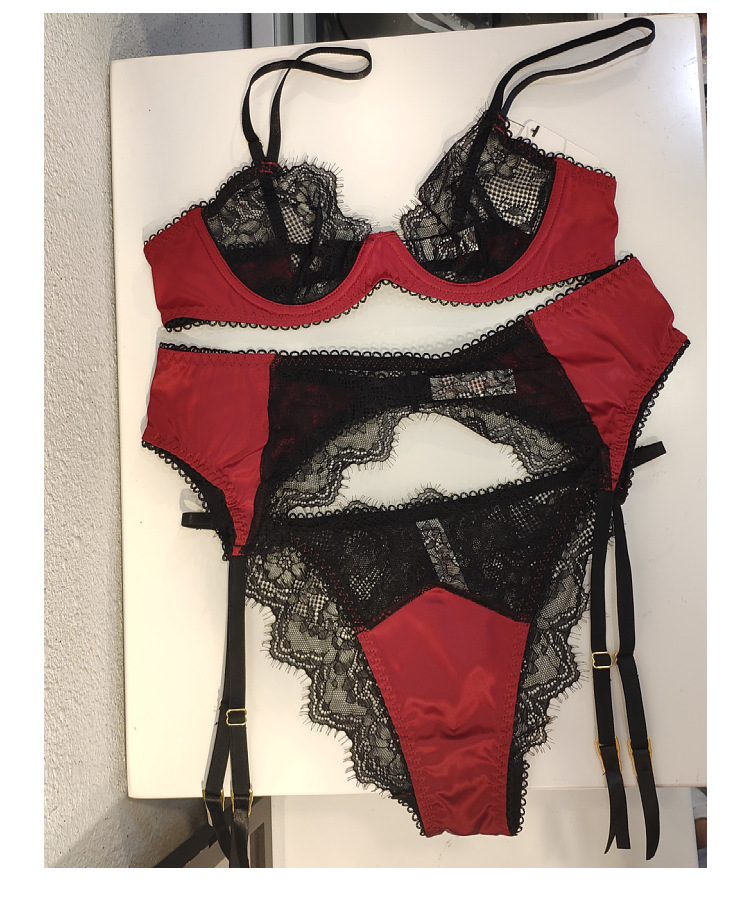 Разработан китайским известным дизайнером. Это очень удобный роскошный комплект с бюстгальтером.