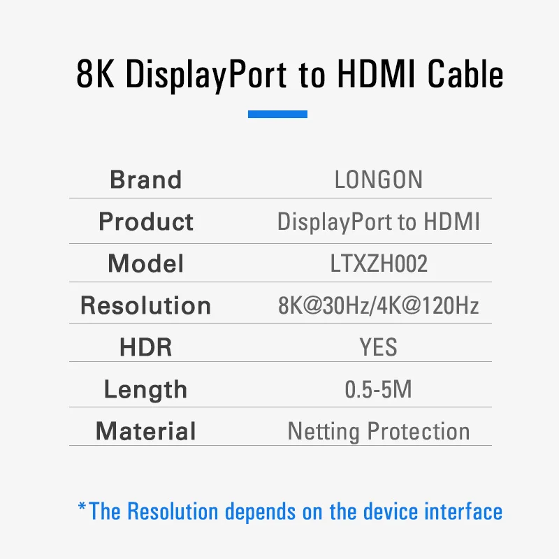 【 8K UHD разрешение 】порт дисплея к HDMI кабель является работой от дома должен иметь, что предлагает разрешение 8K до 7680x4320 при 30 Гц, обратная совместимость с 4K @ 120Hz/60Hz, 2K @ 165Hz/144Hz. В отличие от других кабелей DP-HDMI, которые только поддерживают скорость обновления 1080P, этот порт дисплея 8K к кабелю HDMI идеально подходит, чтобы получить максимальную отдачу от вашего нового HDTV 8K.