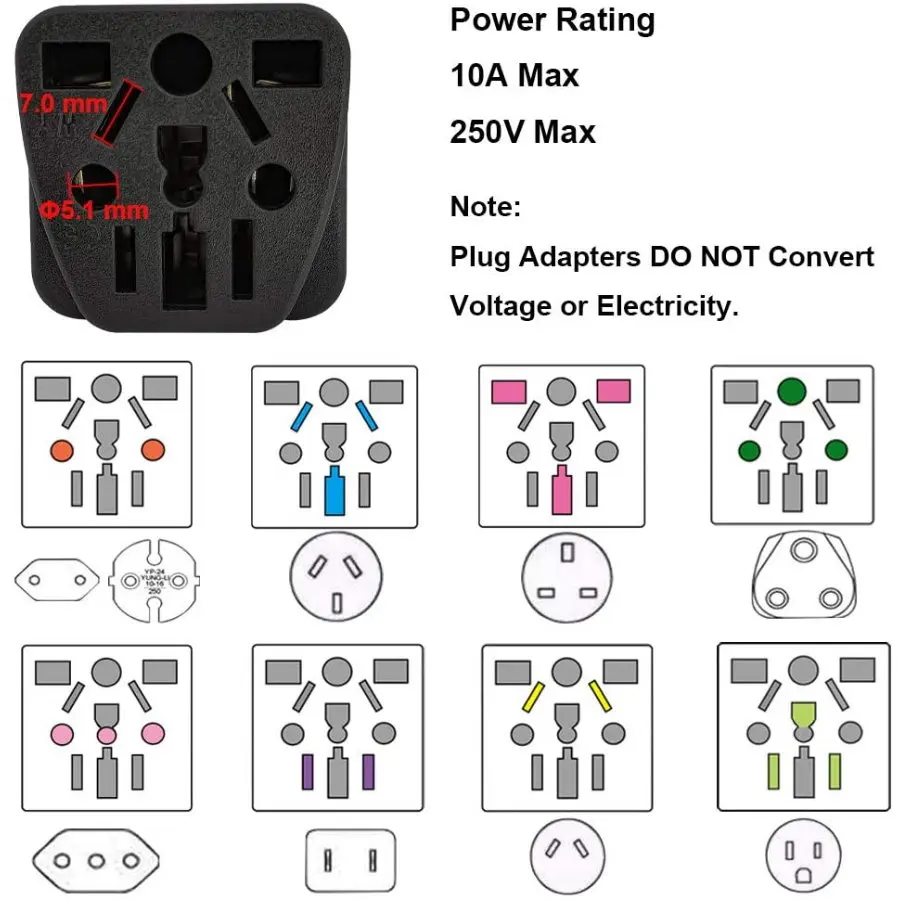 -Note: Power Plug Adapters do not convert voltage, they just change the plug type. Use a proper voltage converter along with a power plug adapter if your device is incompatible with the country's voltage.
