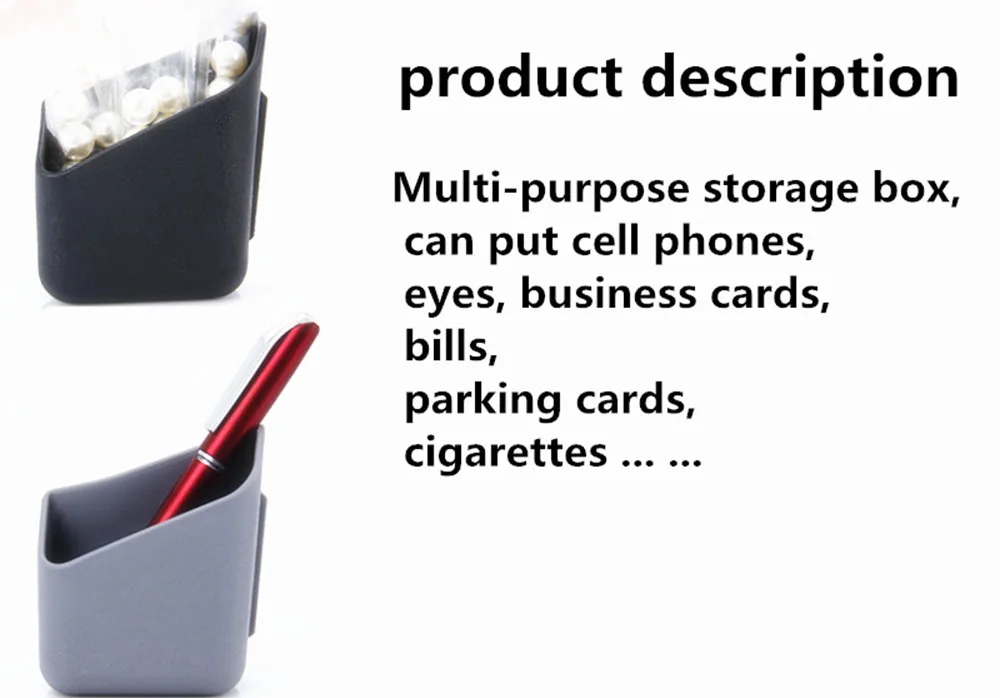 Характеристики: этот продукт может разместить мобильные телефоны, сигареты, бумажные полоски и небольшой мусор, что удобно для вождения и легко и быстро найти. Маленький и изысканный, щедрый и практичный, не занимает мало места, это обязательно для вашего автомобиля!