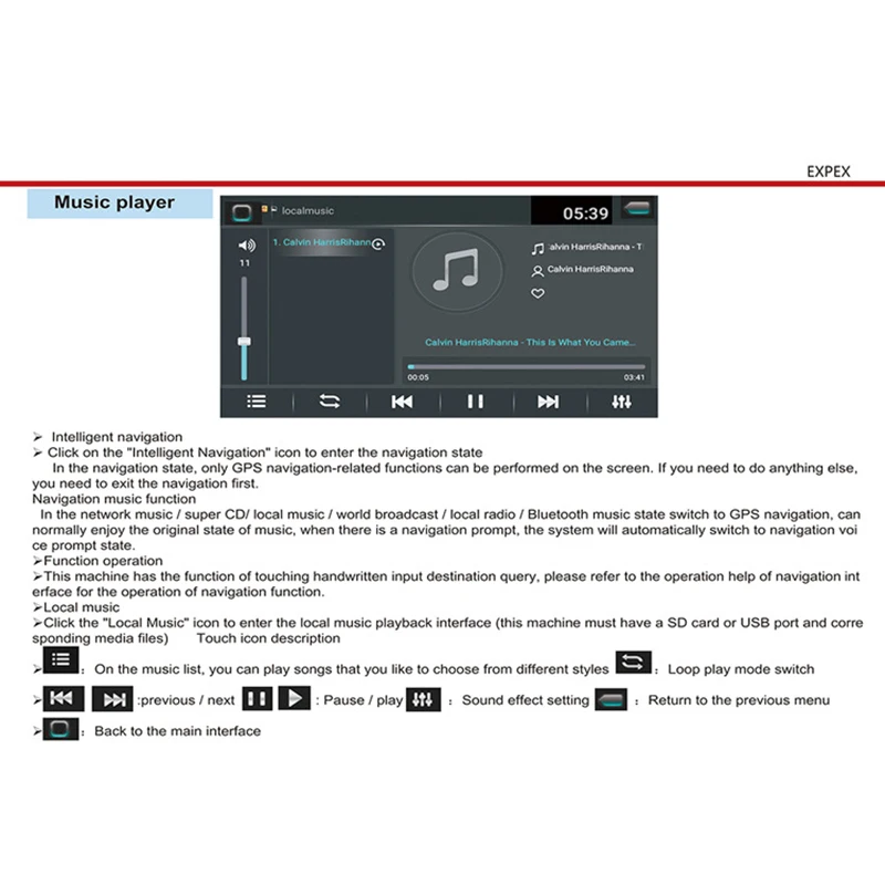3. Press Screen: Capacitive press screen Using the human current sensing. Audio Sound effect: DSP surrond Sound. Audio Model: Classic , , ROCK , HALL , CINEAM ETC