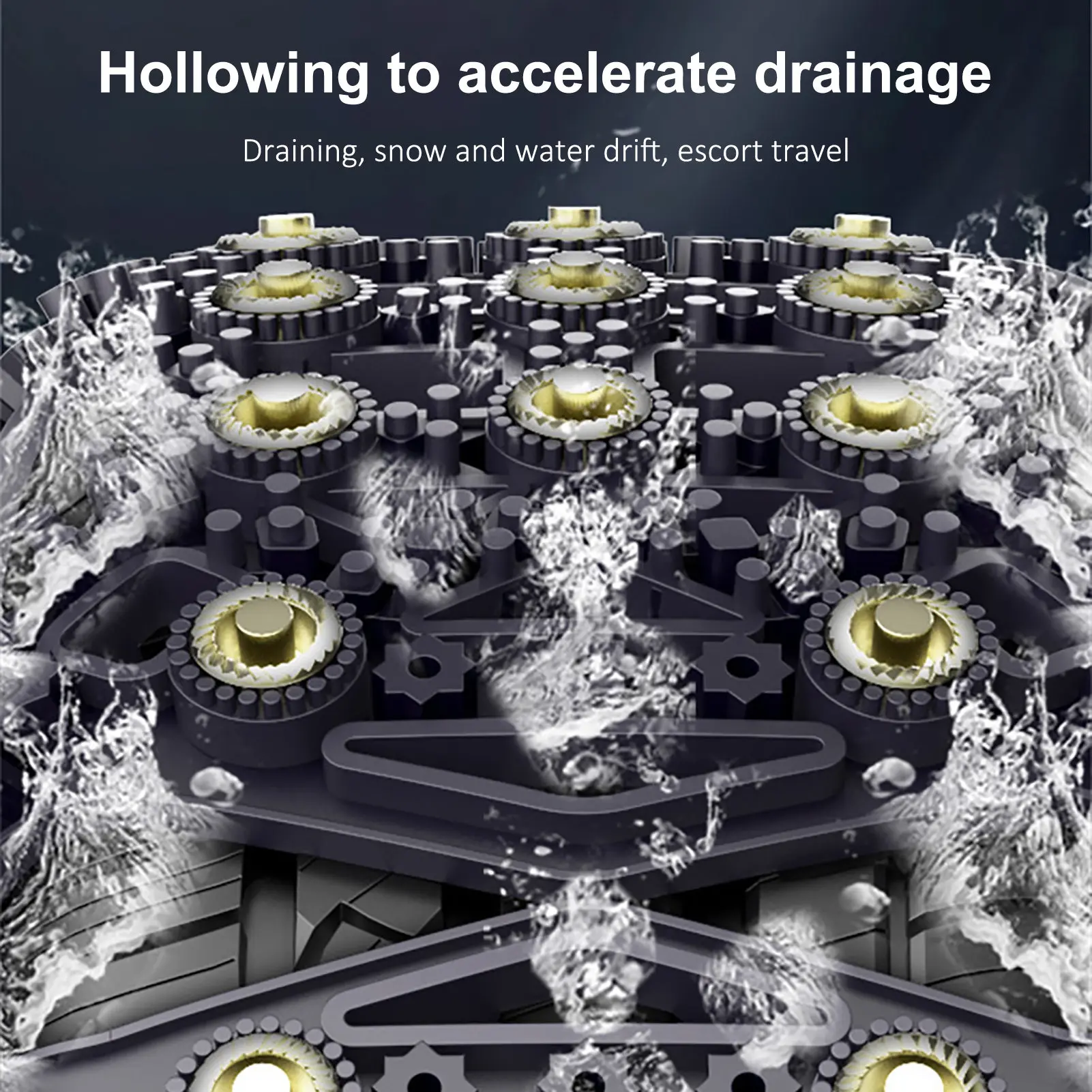 4. Уникальные особенности: Наша цепь для снега не повредит шину и отличается сильной прочностью, расширяющейся и утолщенной цепью, закаленными Стальными Гвоздями. Эта Автомобильная Снежная цепь может эффективно избежать перелома, позволяет свободно поднимать домкрат для достижения быстрой установки. Контакт с землей покрыт гвоздями из сплава высокой твердости, предотвращают скольжение. Гуманизированная конструкция из легированной стали, хорошая производительность не скользит, ломает лед и сжимает дорогу.
