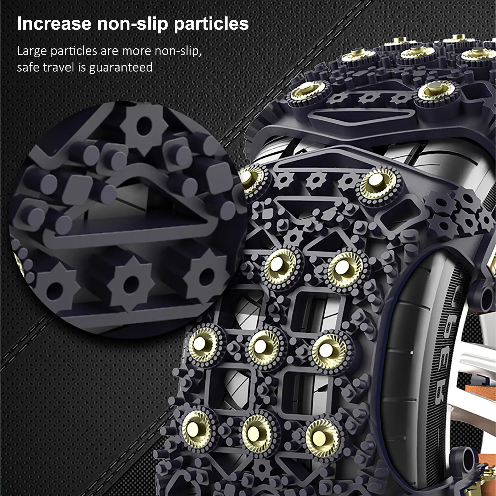 5. Практичные инструменты для вождения: цепь для зимних шин удобна в переноске и использовании для любой аварийной дорожной помощи. Вы можете установить его на шины вашего автомобиля в течение нескольких минут, и спасите свой автомобиль от тяжелой ситуации. Цепи для снега для автомобиля можно разместить в автомобиле в любое время в режиме ожидания. Автомобильные цепи для снега обеспечивают отличные результаты в плохих погодных условиях, таких как снег, грязь или лед, с двойным резьбовым и многослойным узором.