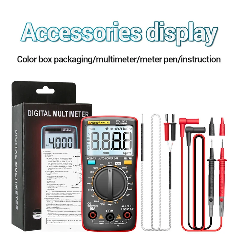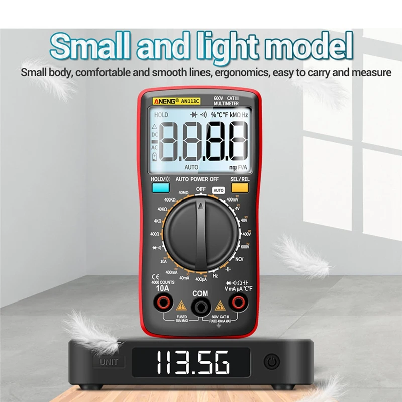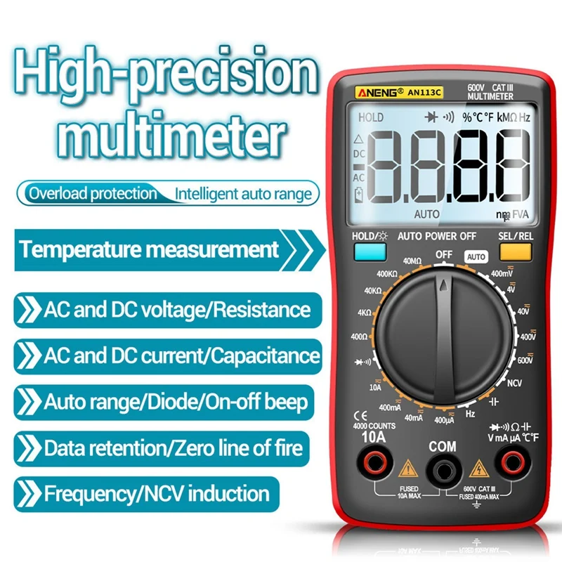 Акция! Цифровой мультиметр ANENG AN113C, 600 В, 4000 расчетов, Электрический измеритель, тестер транзисторов, Автоматический диапазон напряжения переменного/постоянного тока C