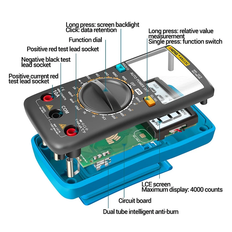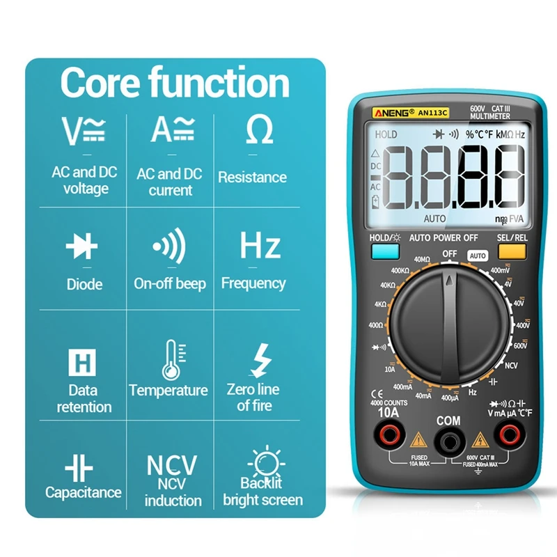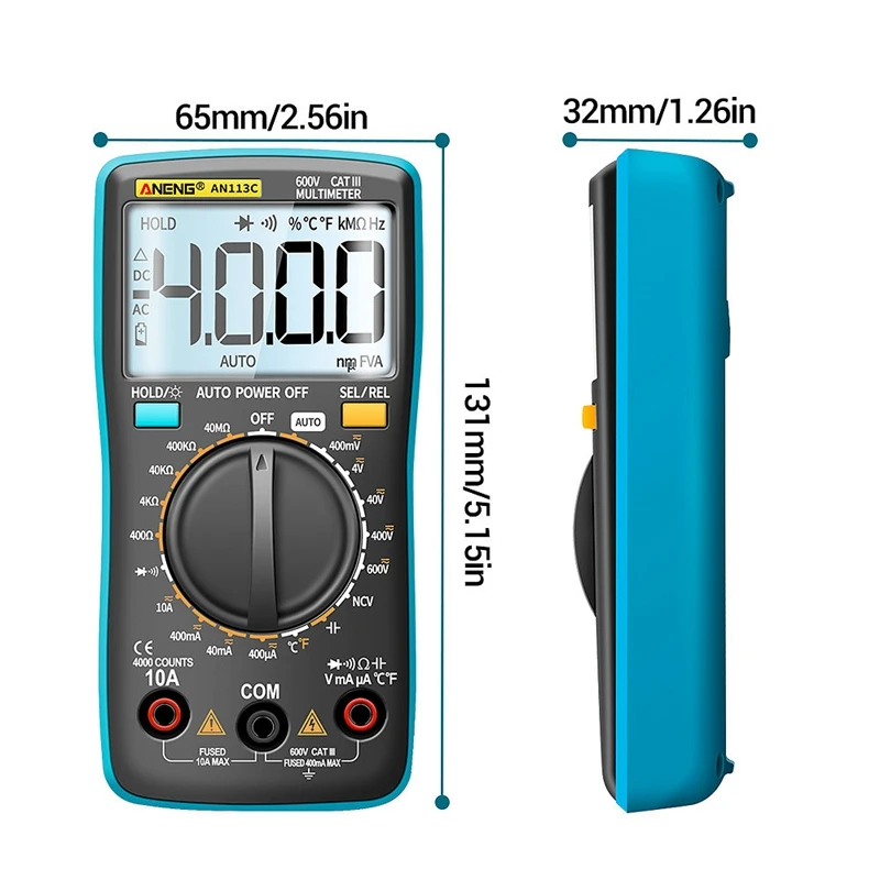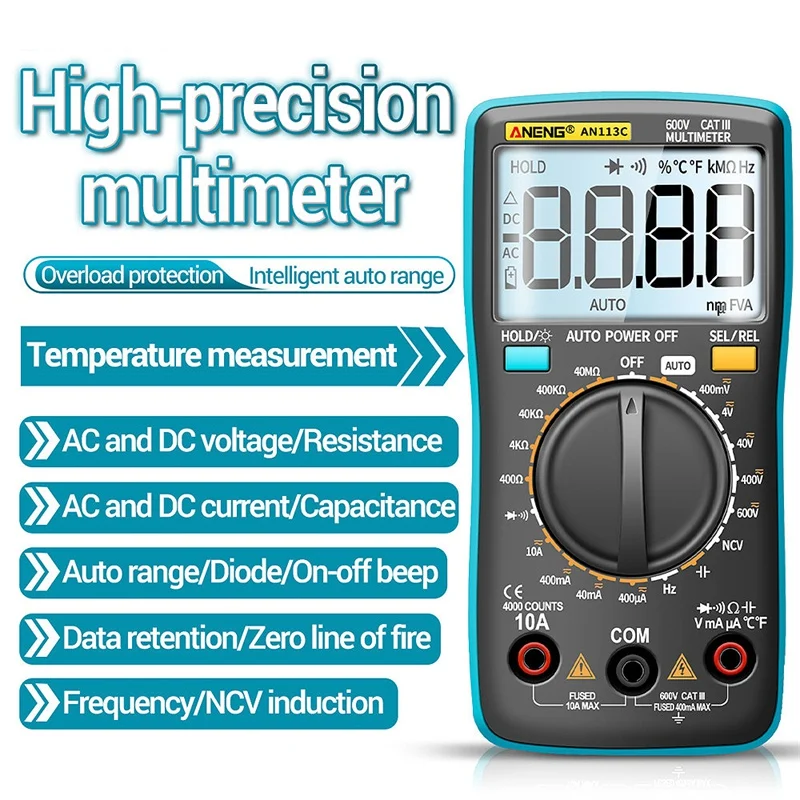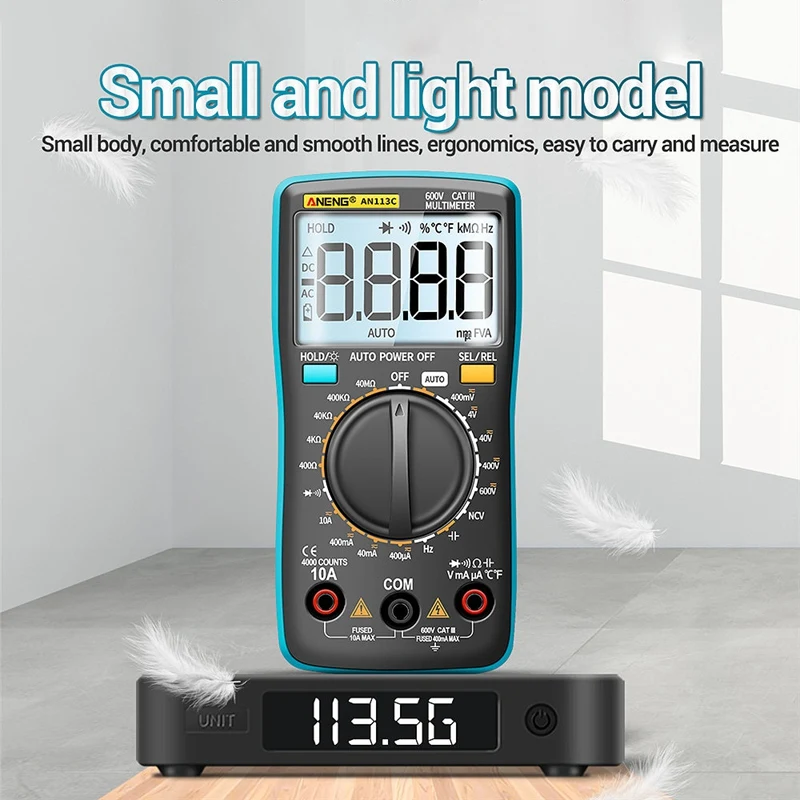 Акция! ANENG AN113C Цифровой мультиметр 4000 отсчетов истинный RMS ЖК-дисплей AC и DC тестер Напряжение Вольтметр Амперметр Вольтметр