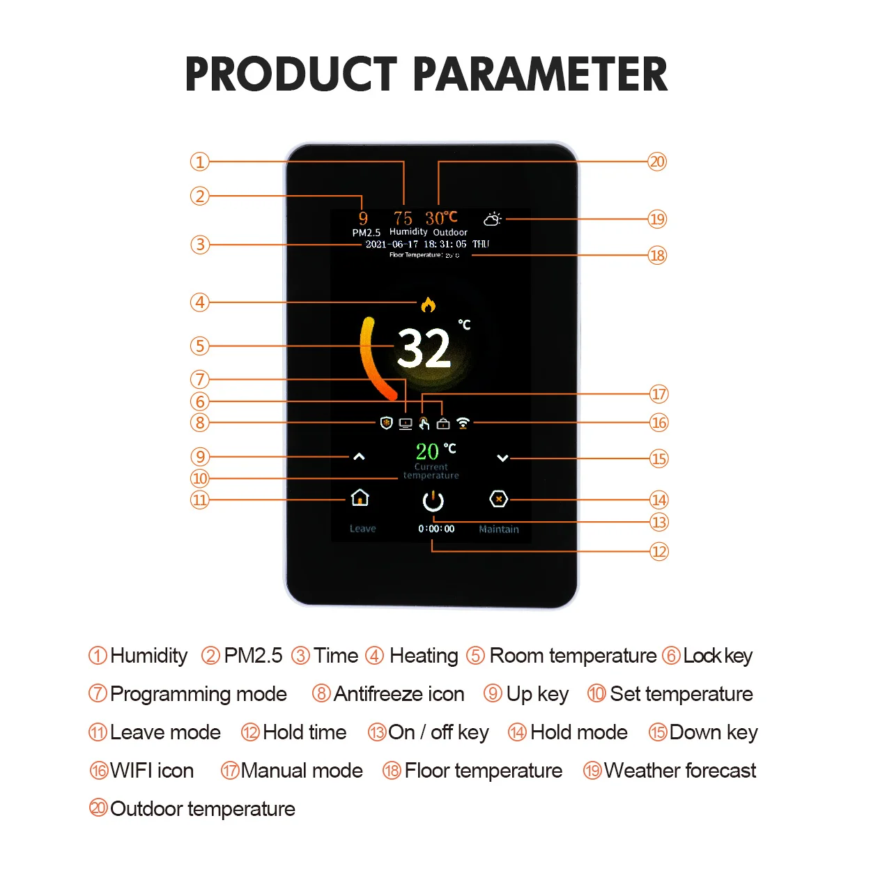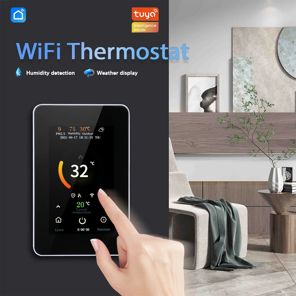 Tuya WiFi умный термостат с СО2 и датчиком влажности температурный контроллер работает для электрического напольного отопления воды/газового котла