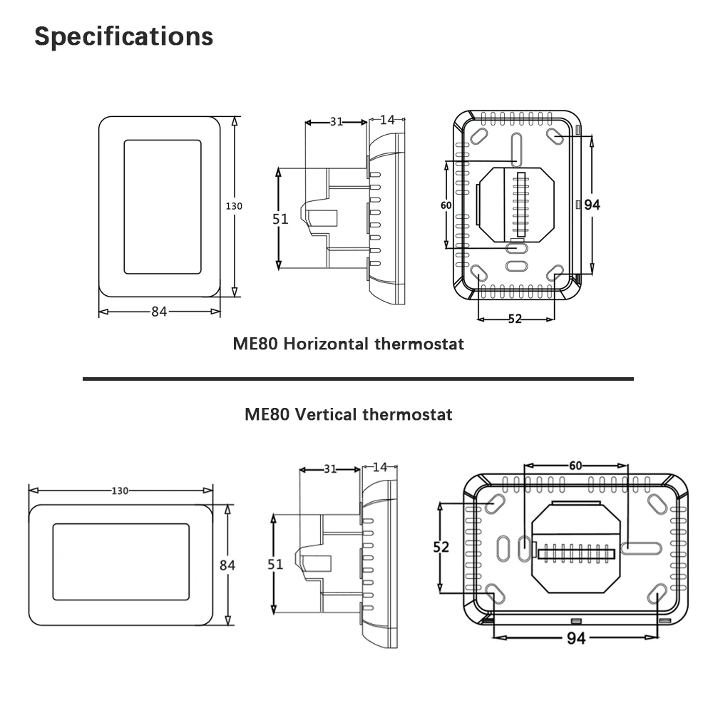 * Термостат не может переключить направление отображения экрана, поэтому вам нужно выбрать правильную версию (по горизонтали или по вертикали) при покупке.