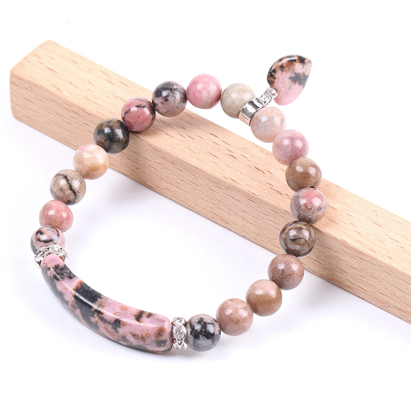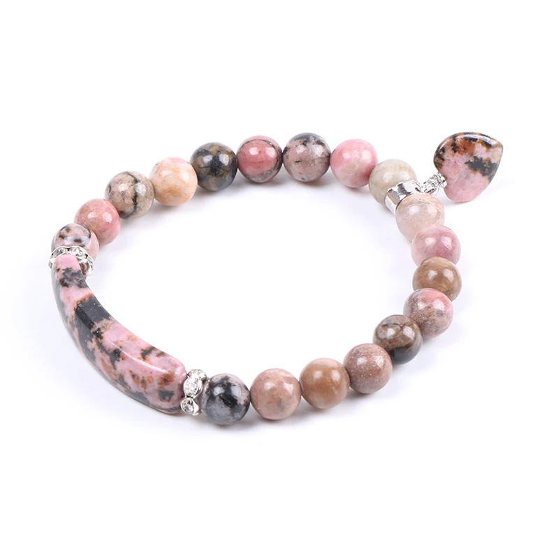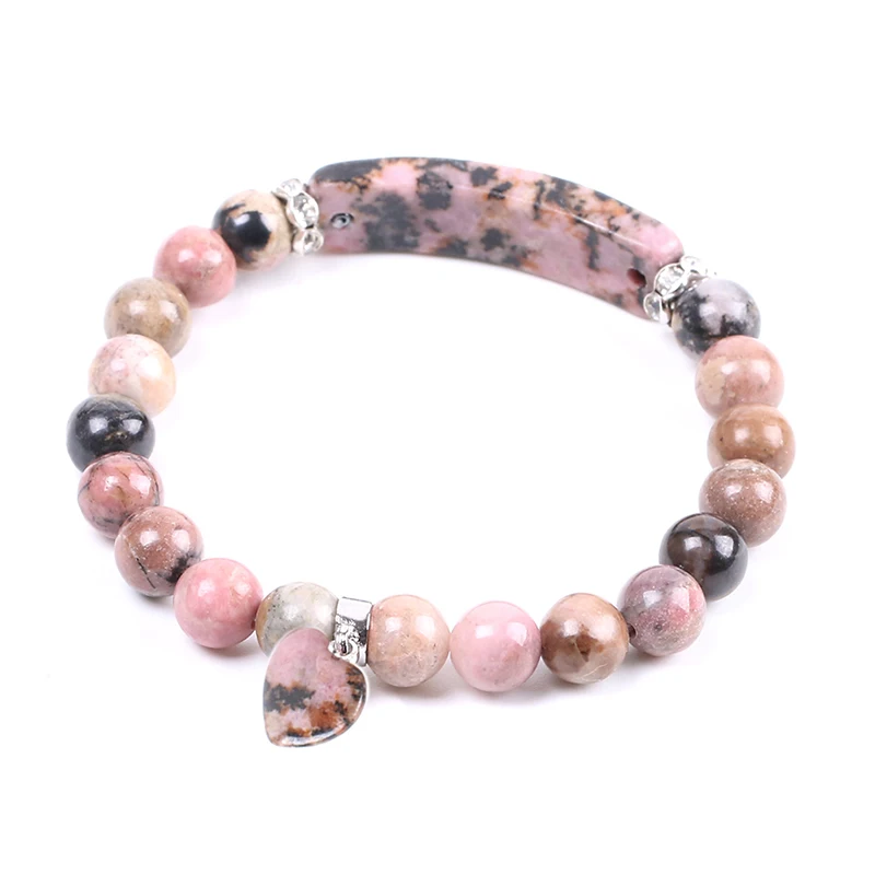 CSJA розовая черная линия браслет из родонита браслеты с бусинами из натурального камня круглый кристалл кварцевый браслет сердце Защитная энергия F104 | |