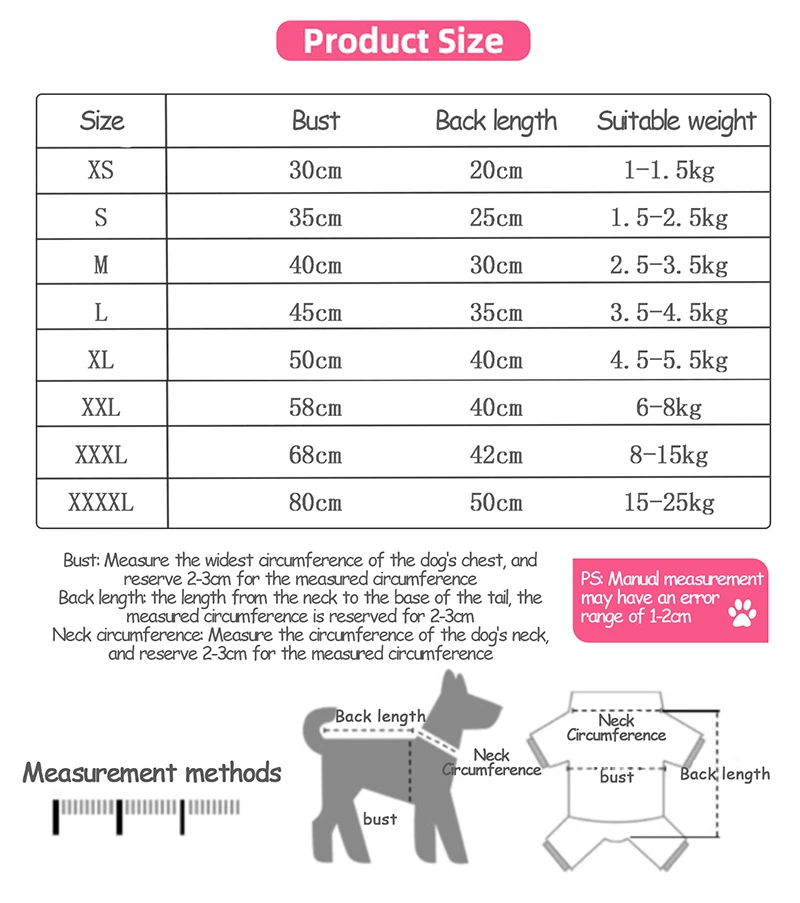 1. Пожалуйста, проверьте вашего питомца замеры изделий сделаны вручную, поэтому убедитесь в том, что одежда подходит для домашних животных перед тем, как вы заказываете (1 дюйм = 2,54 см)