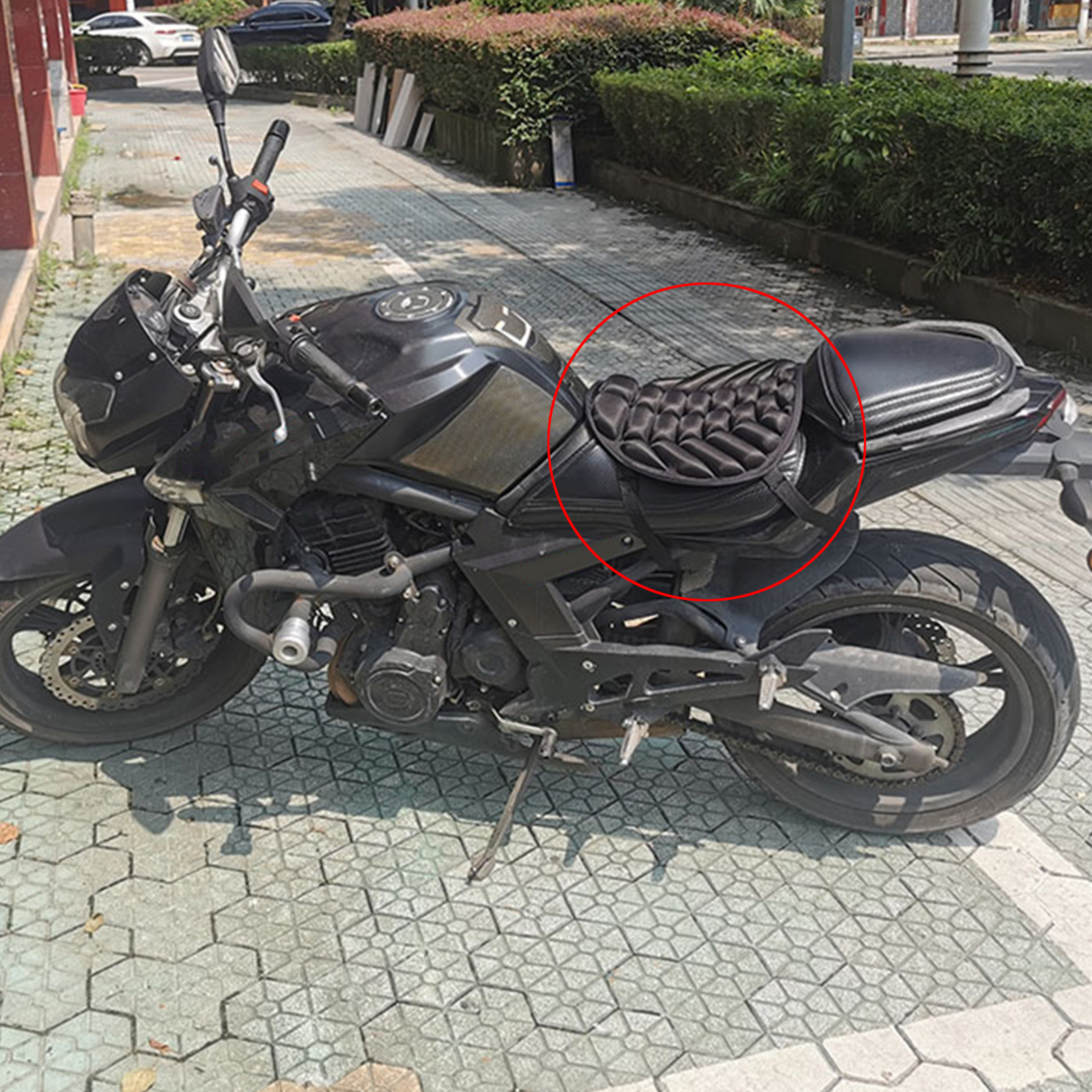 Легко устанавливается-легко крепится с двумя ремешками, которые соединяются под сиденьем. Повязки используют метод поперечной упаковки, чтобы позаботиться о форме сиденья, что делает комфортную подушку сиденья мотоцикла лучше. Нижняя часть воздушной подушки мотоцикла также разработана с уникальными противоскользящими частицами.