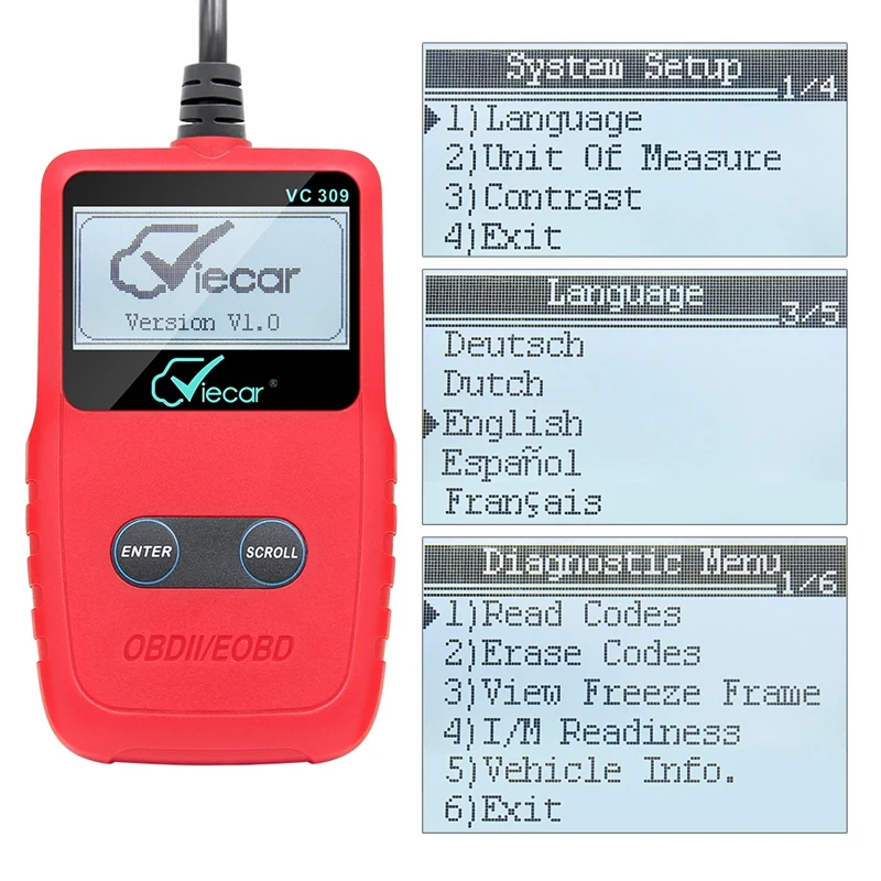Viecar V309 OBDII EOBD Diagnostic Scanner VC 309 OBD OBD2 Diagnosis Tool Support For SAE J1850 Protocols
