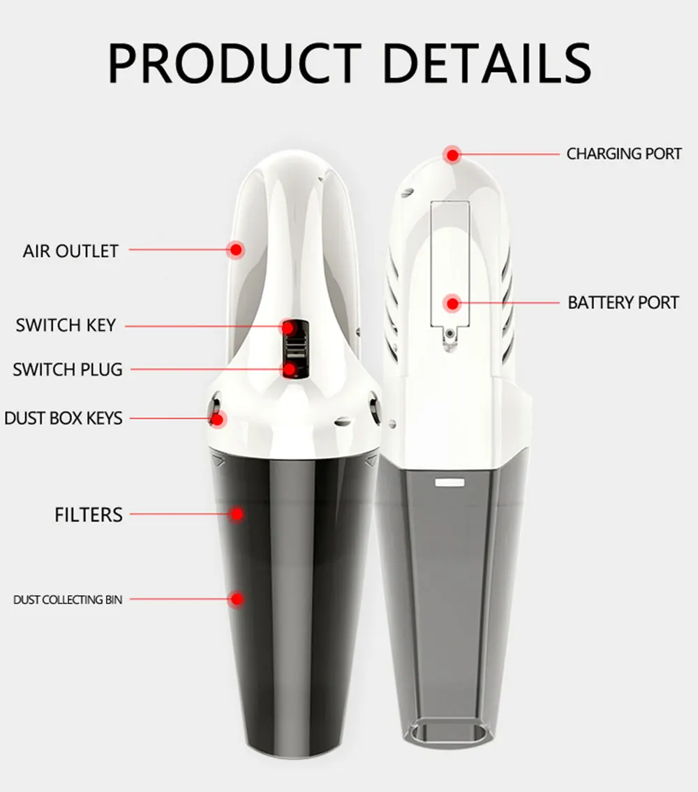 120 Вт Мощный беспроводной автомобильный пылесос портативный USB влажный/сухой