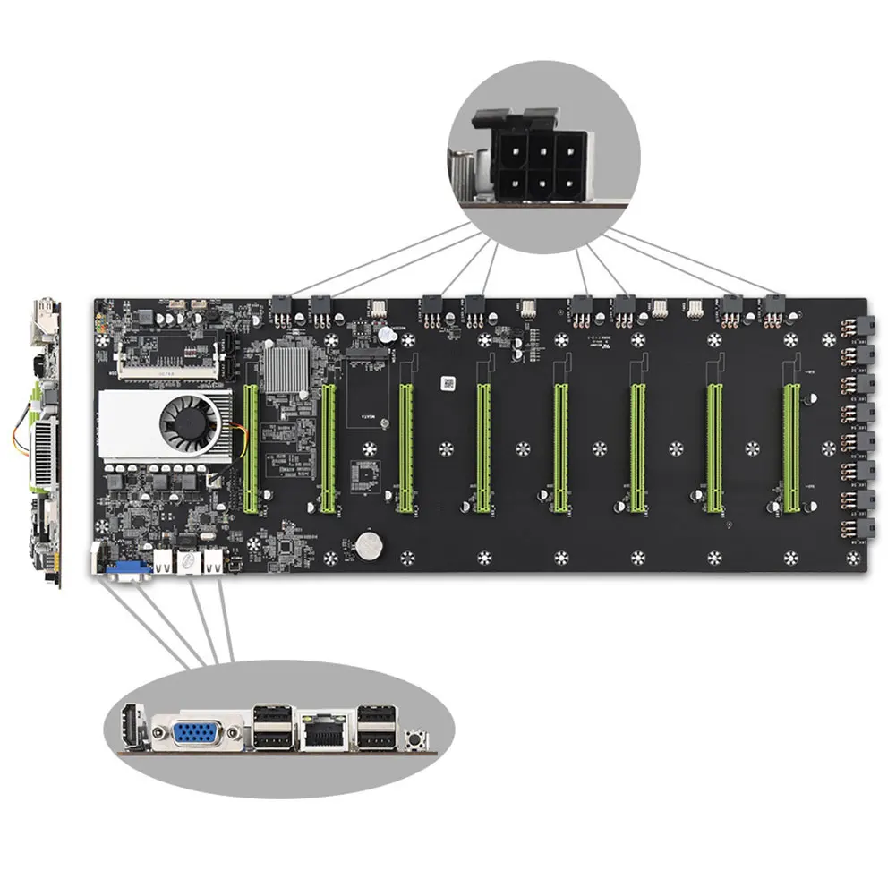 Расширяемый порт материнской платы ETH BTC Miner 8 * PCIE 16X /4 USB2.0 /DDR3 слот Sodimm/Поддержка