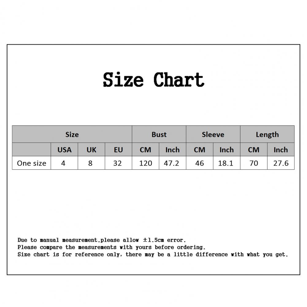 [Один Размер] Длина: 70 см/27,6 ", обхват груди: 120 см/47,2", рукав: 46 см/18,1 "(прибл.)