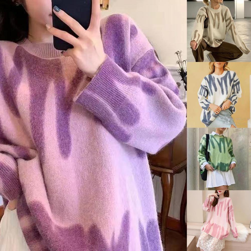 Универсальный Классический Вязаный Свитер оверсайз с принтом, устойчивый к холоду пуловер, свитер, ребристые манжеты, уличная одежда