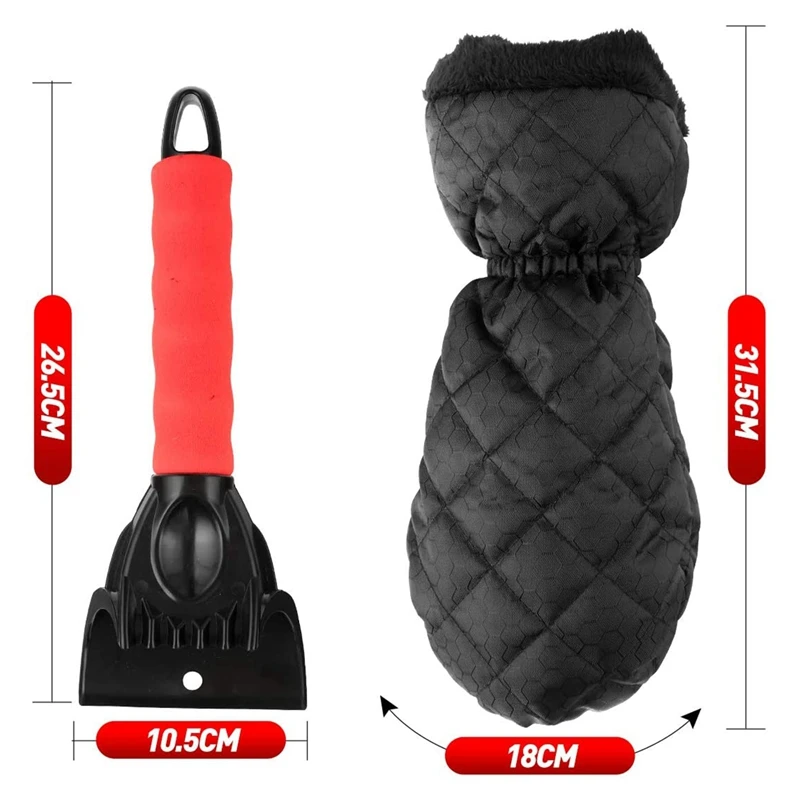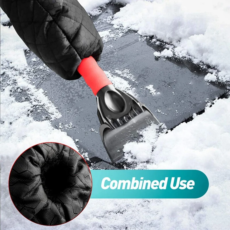 Скребок для льда, ветровое стекло, скребок для снега с водонепроницаемой перчаткой, подкладка из плотного флиса для автомобиля, внедорожника, грузовика