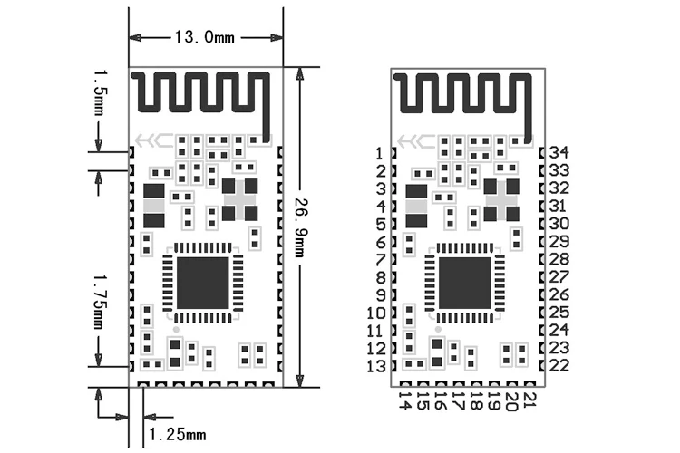 Модуль принимает метод упаковки отверстий штампа, который может быть прошит и сварен. Размер модуля 26,9 мм × 13 мм × 2,2 мм, что очень удобно для клиентов для размещения в система применения.