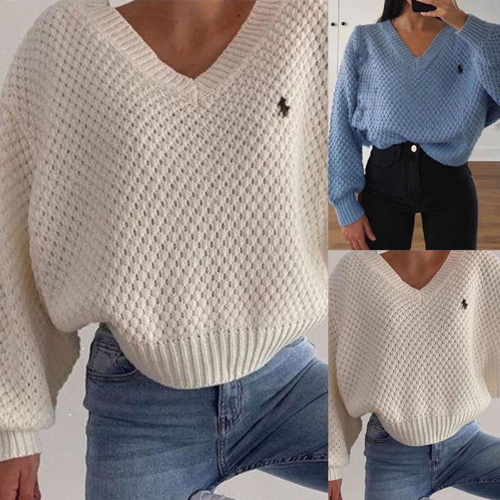 В этом свитере с v-образным вырезом вы сможете лучше показать свою сексуальную ключицу и маленькое лицо. Повседневный свитер с рукавами «летучая мышь» придает вам чувство модности.