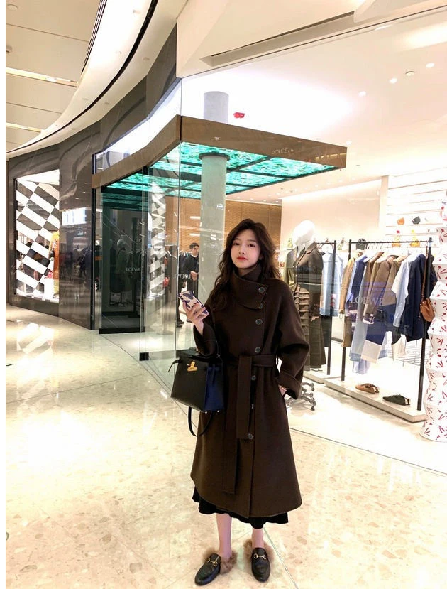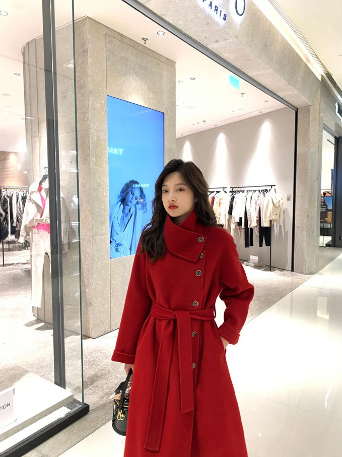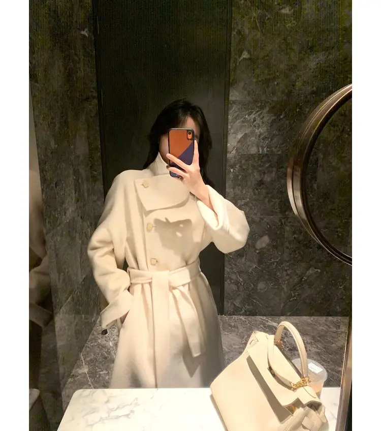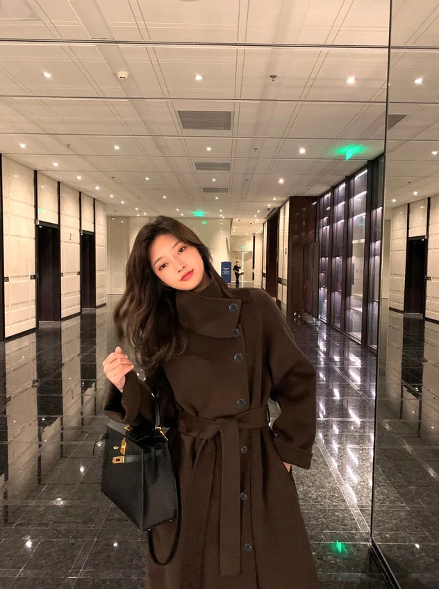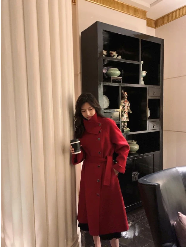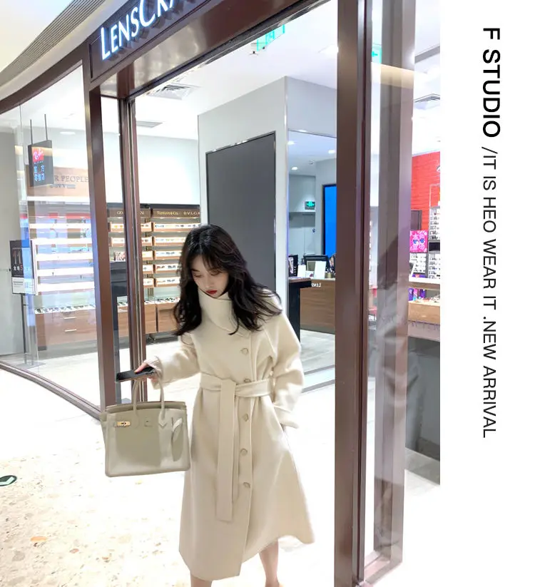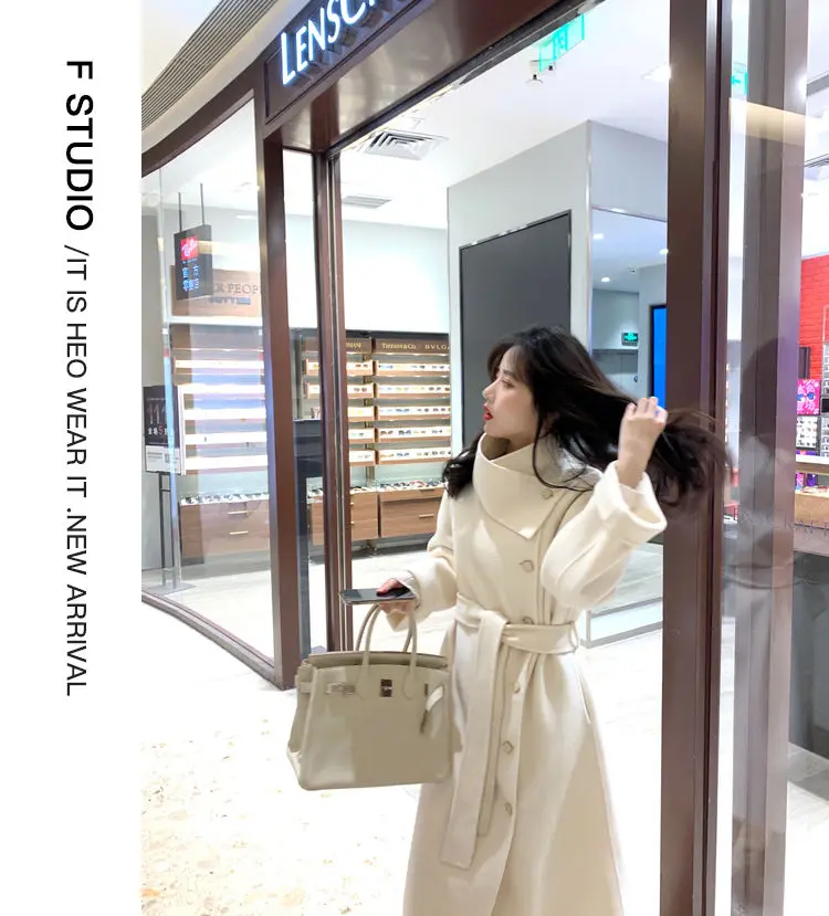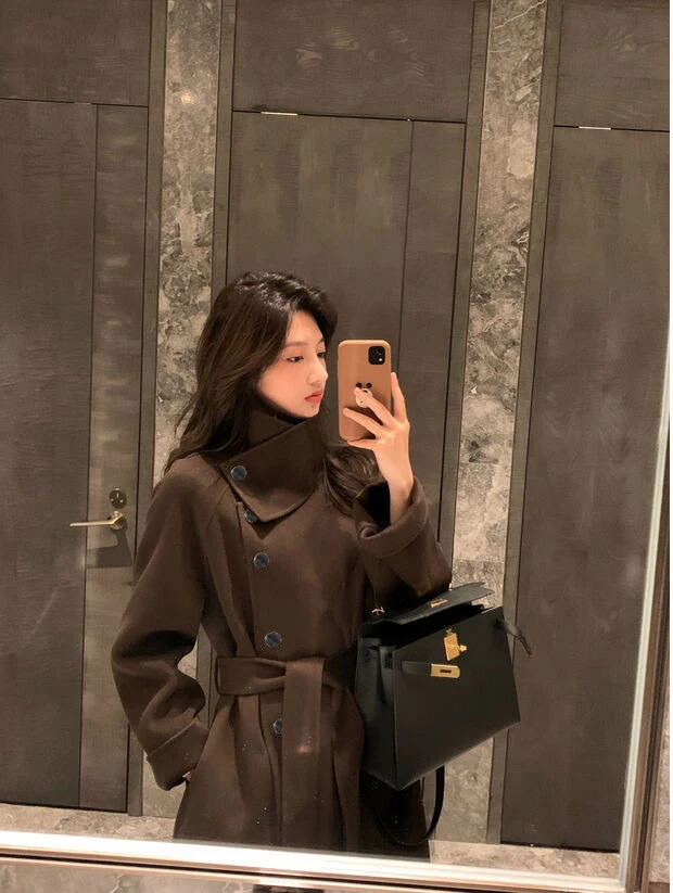 Женское клетчатое пальто из овечьей шерсти с воротником меха ягненка плотное